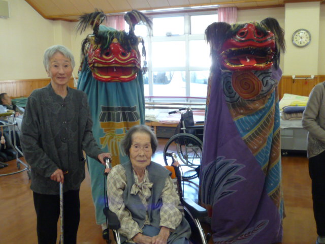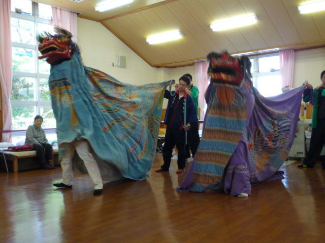 高城のお祭りがあるので地域の方が獅子舞を舞に来てくれました。