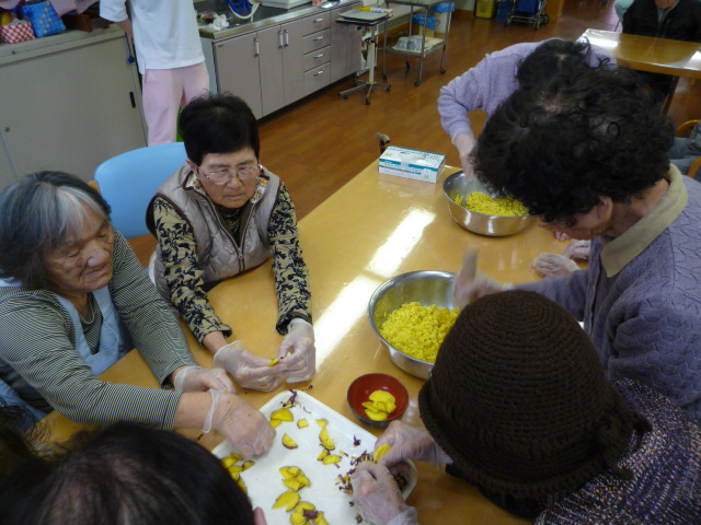 裏の畑で採れたサツマイモを使い、スイートポテトを作り、おやつの