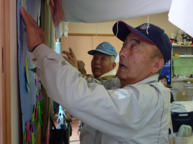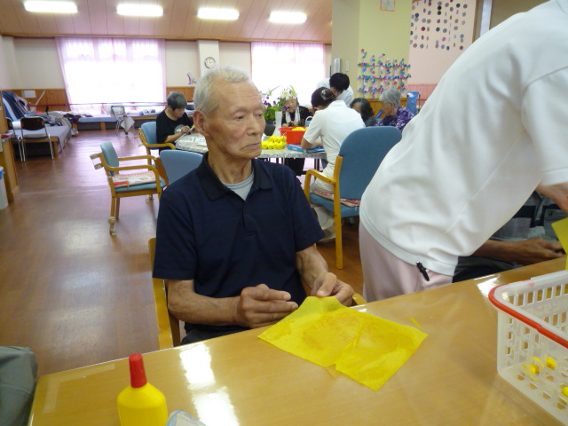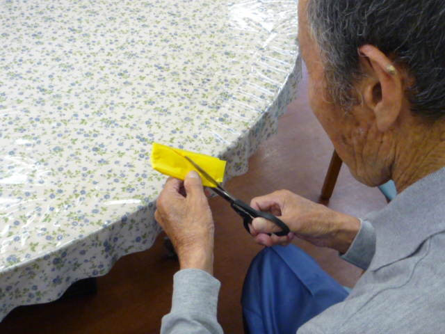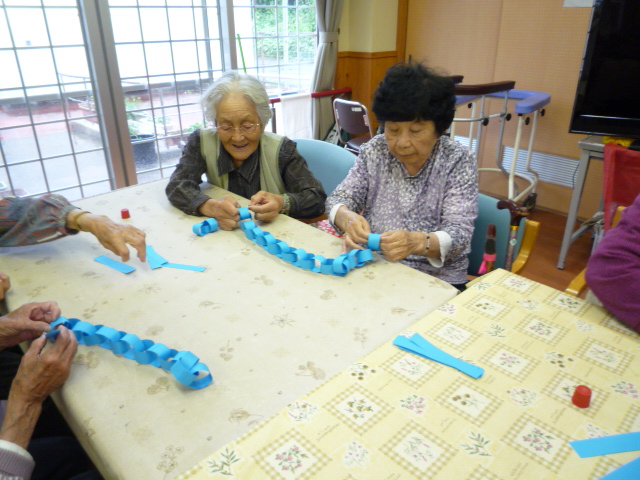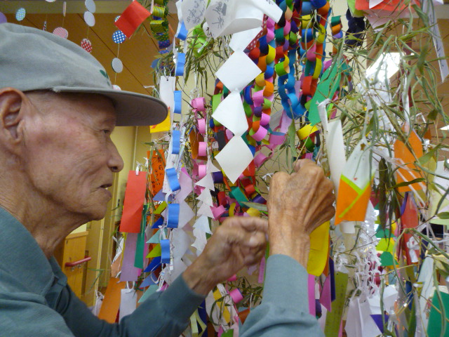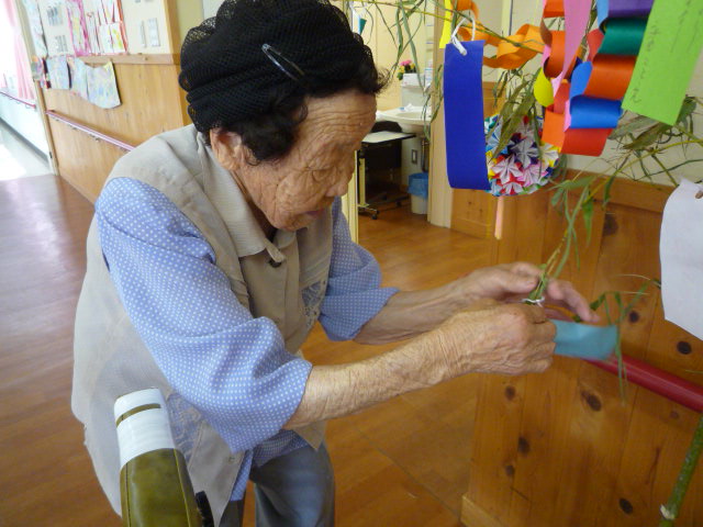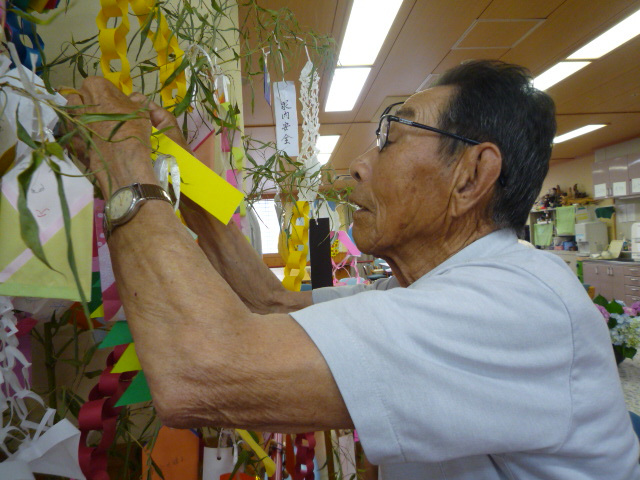 7月7日の七夕に向けて、笹飾りをしているところです。