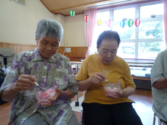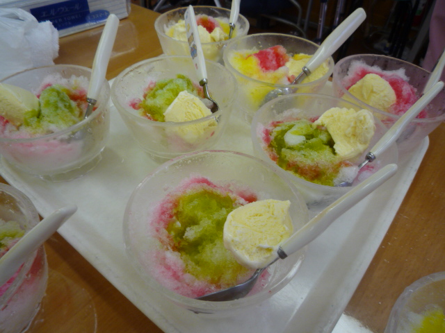 盆踊りの合間にかき氷を、食べて頂き「冷たくて美味しい」と喜ばれていました。