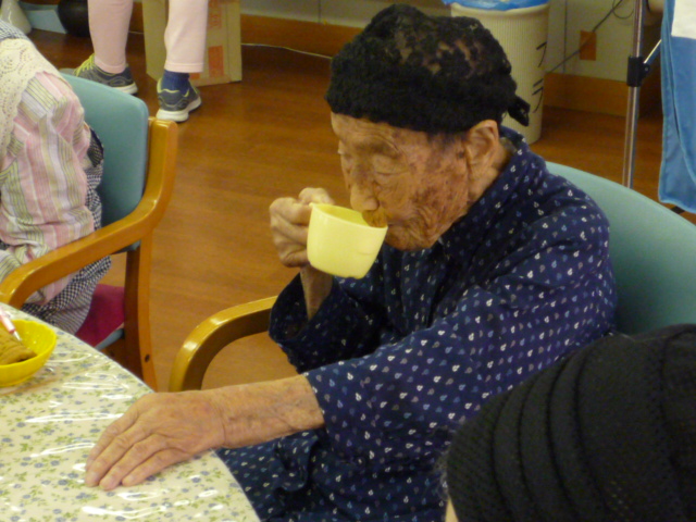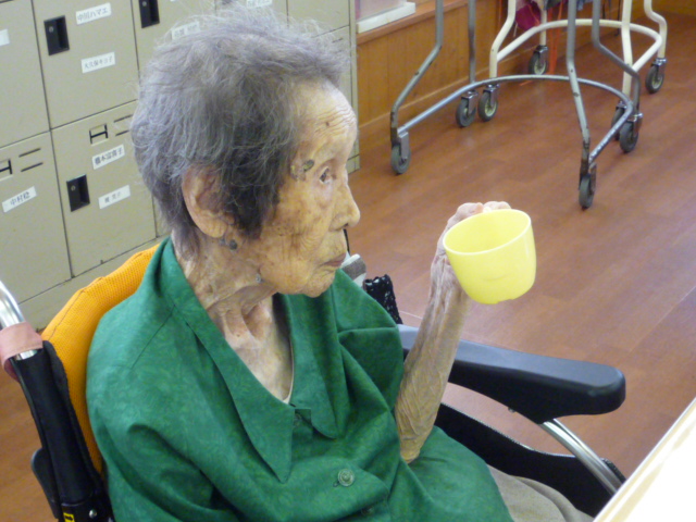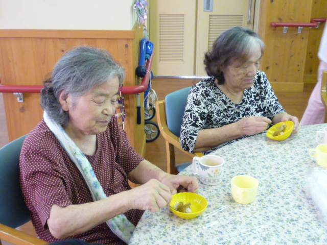先月デイで作った梅ジュースを、おやつの時間に飲んで頂きました。