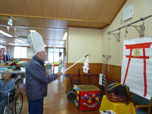 利用者様に神主役をして頂きました。かしこみかしこみ〜