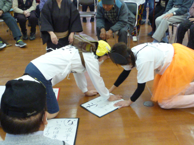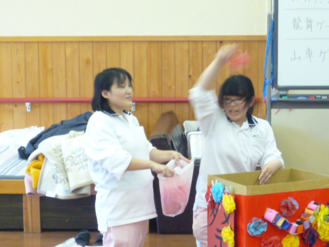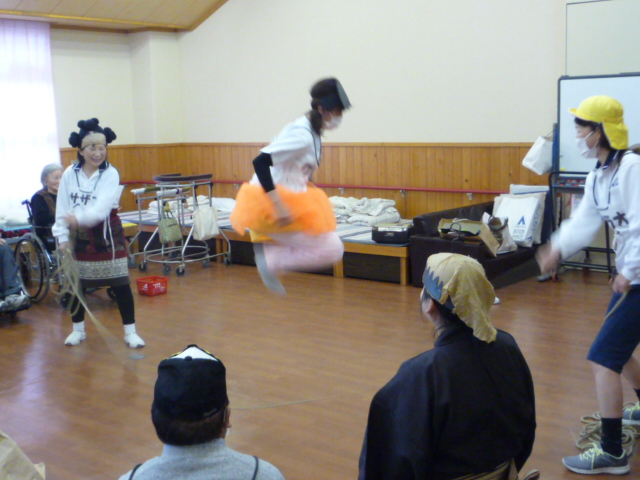 劇の中で縄跳び、カルタ、ダンスを皆さんの前で披露しました。