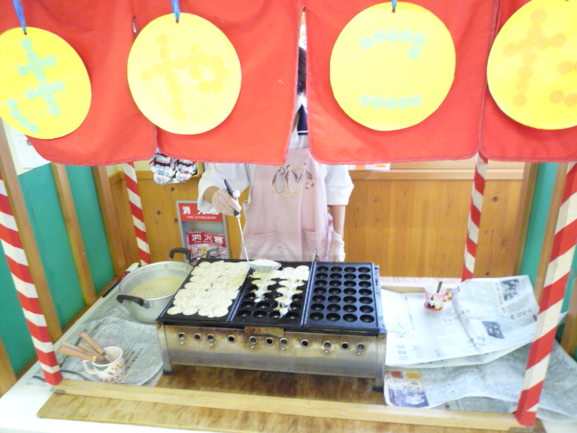 鳥居や獅子頭、御輿、龍、山車、出店を用意して本格的な祭りを