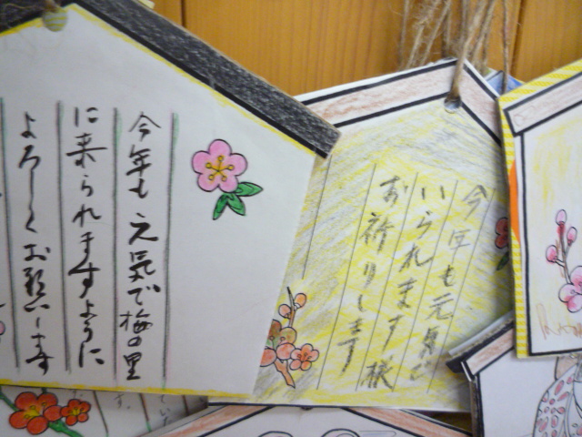 今年は戌年なので、犬の絵が描かれた絵馬を、切って貼る