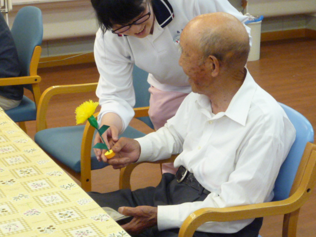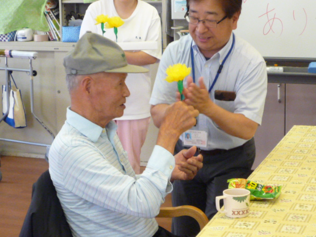 今回、男性利用者様に黄色のカーネーションをお配りさせて頂きました。