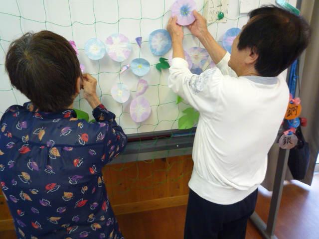 今月のクラフトは朝顔を作りました。
