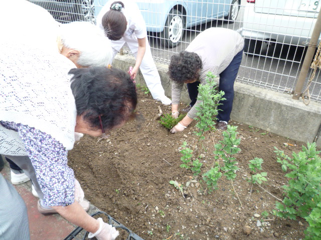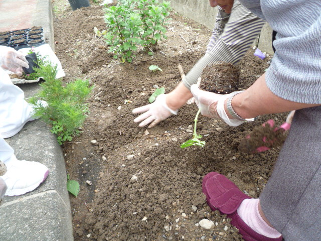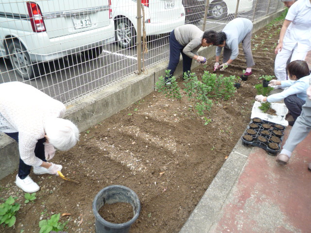 利用者の皆様と一緒に苗植えを行いました。