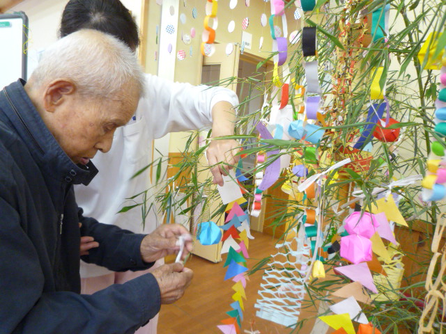 七夕の笹飾りをしました。