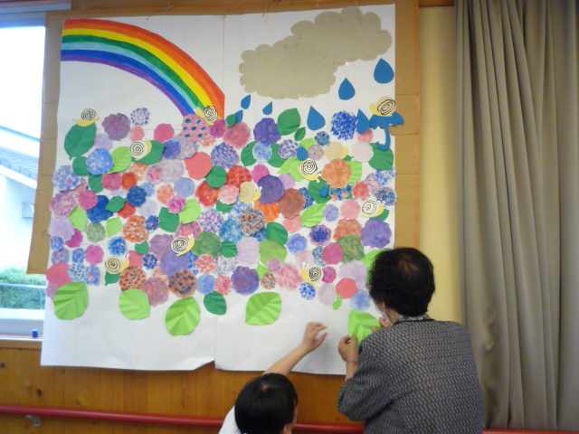 デイサービスの壁へ貼る壁紙を利用者様と一緒に作りました。