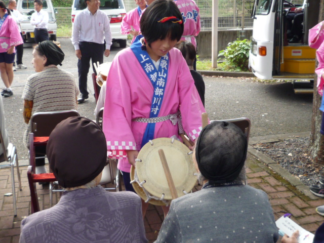 利用者様に配って頂き、和太鼓の方も叩かせて頂きました。太鼓の