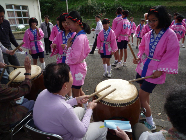 今日は上南部中学校より生徒の方々が来られ、和太鼓演奏を披露