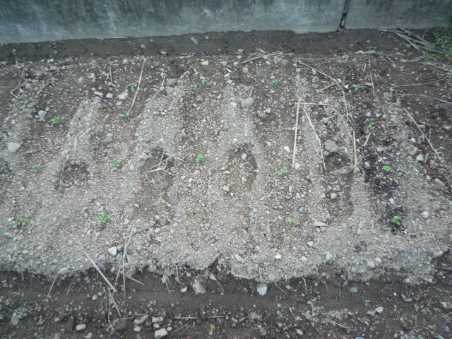 前にデイの畑で大根、小カブ、聖護院大根の種をまいた後から