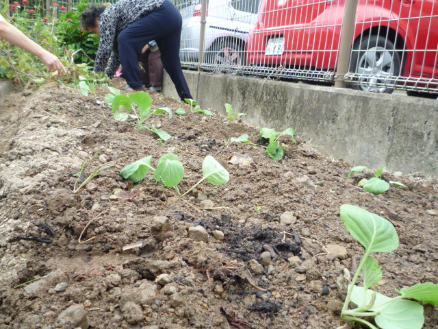 裏にある畑へキャベツの苗を植えました。