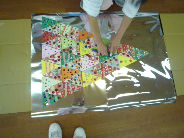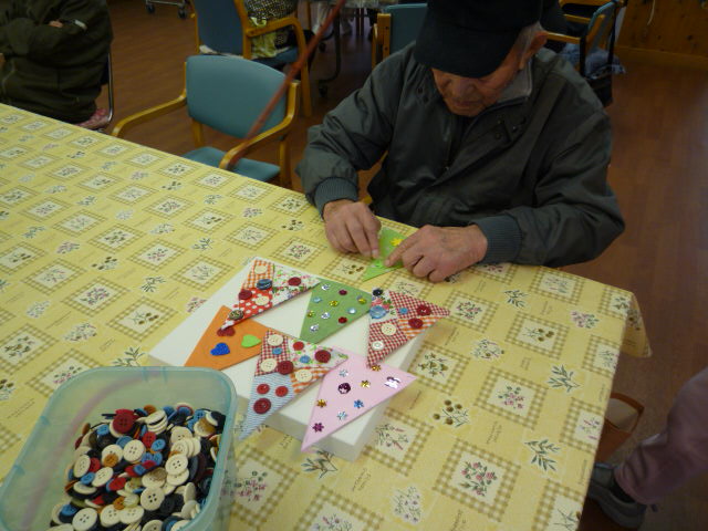 利用者様に手伝って頂いたおかげで綺麗なクラフトが出来上がりました。