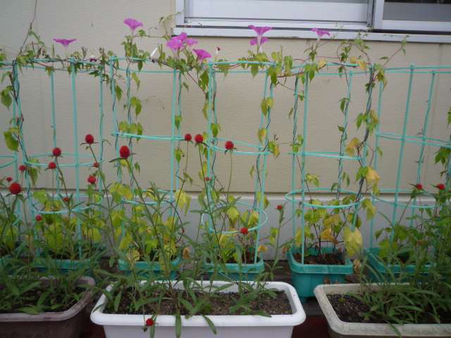瓜、朝顔、なた豆、ボーズ花が出てきてます。