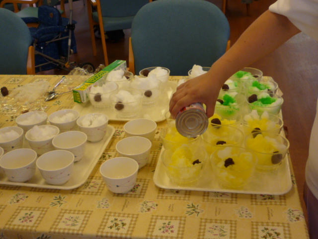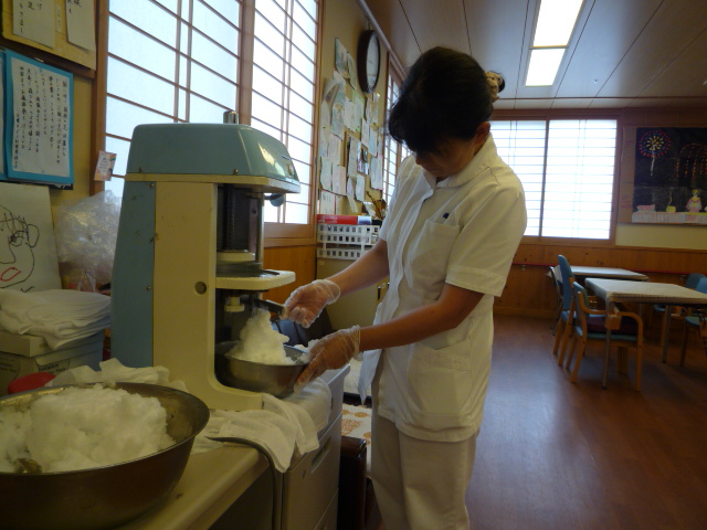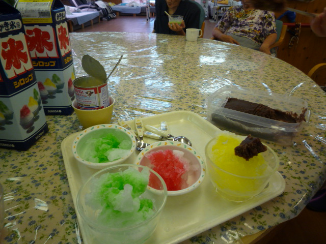 猛暑日が続く中みなさん冷たいかき氷を美味しく頂き喜ばれ涼しいひとときを過ごされています。