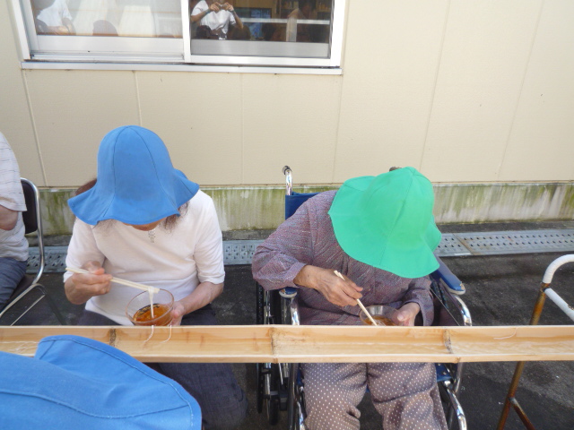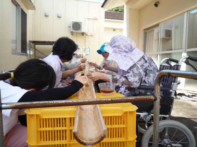 デイサービスでは、夏ならではの行事“流しそうめん”