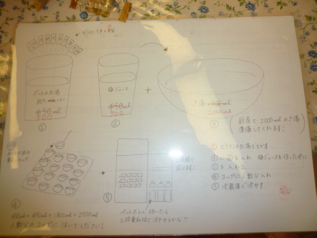 うまく梅ジュースが出来れば、この8月にそのジュースを使い、ゼリーにしてみなさんに頂いてもらう予定にしております。