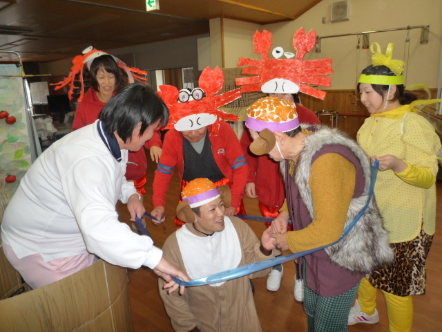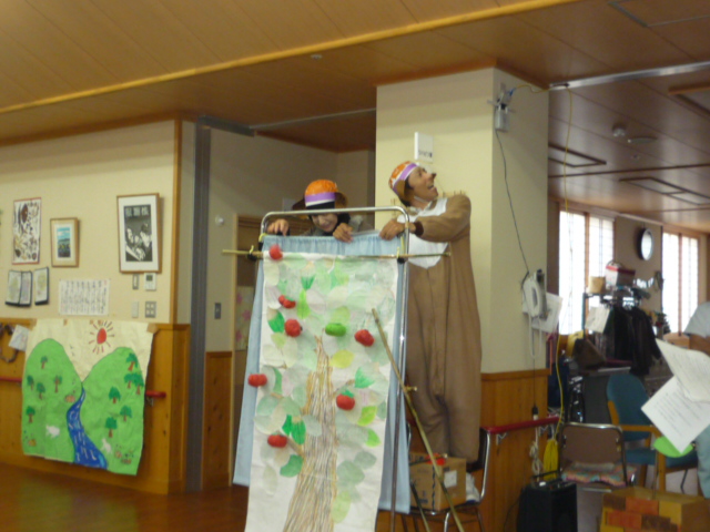 頂こうと思い、デイ職員で『さるかに合戦』の劇をしました。