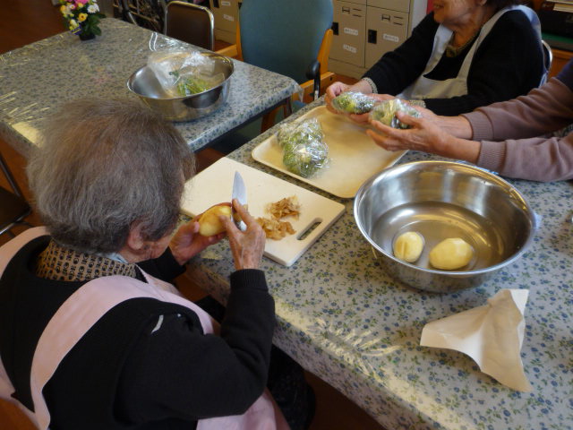 利用者様から頂いたジャガイモと施設裏の畑で穫れたブロッコリーを