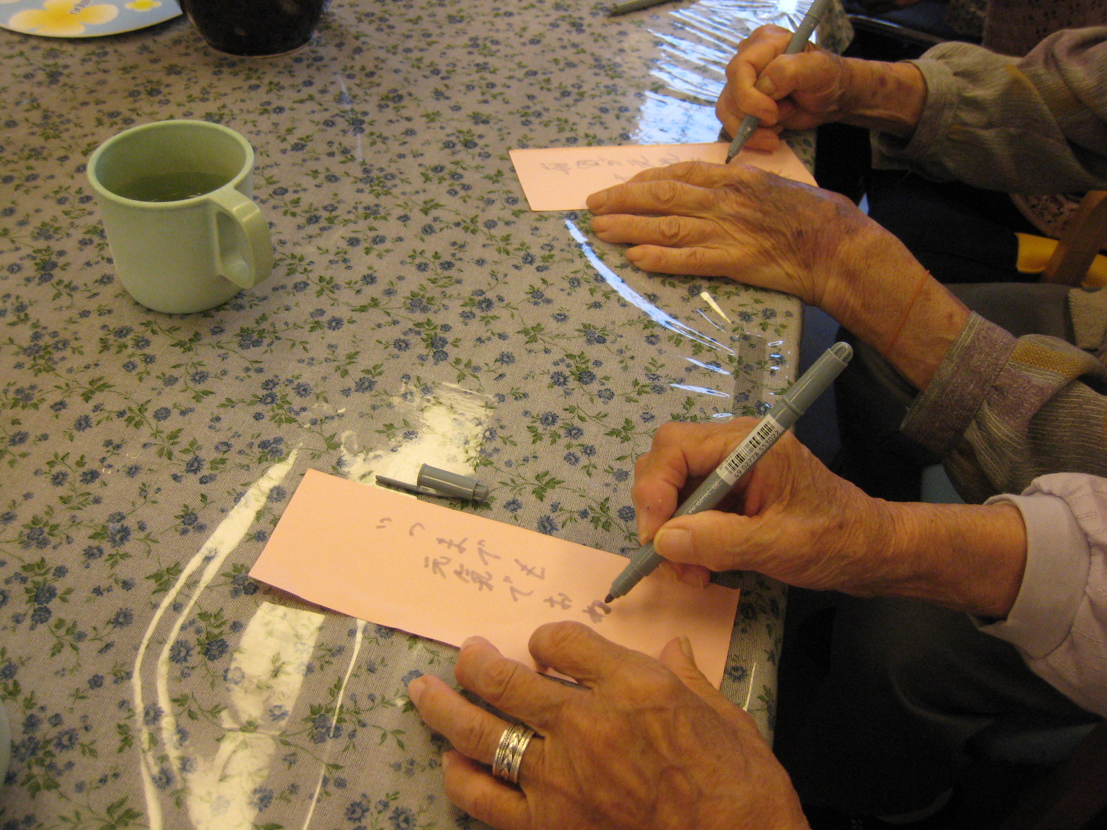 作りました。針に糸を通せない職員や簡単に通せてしまう利用者、