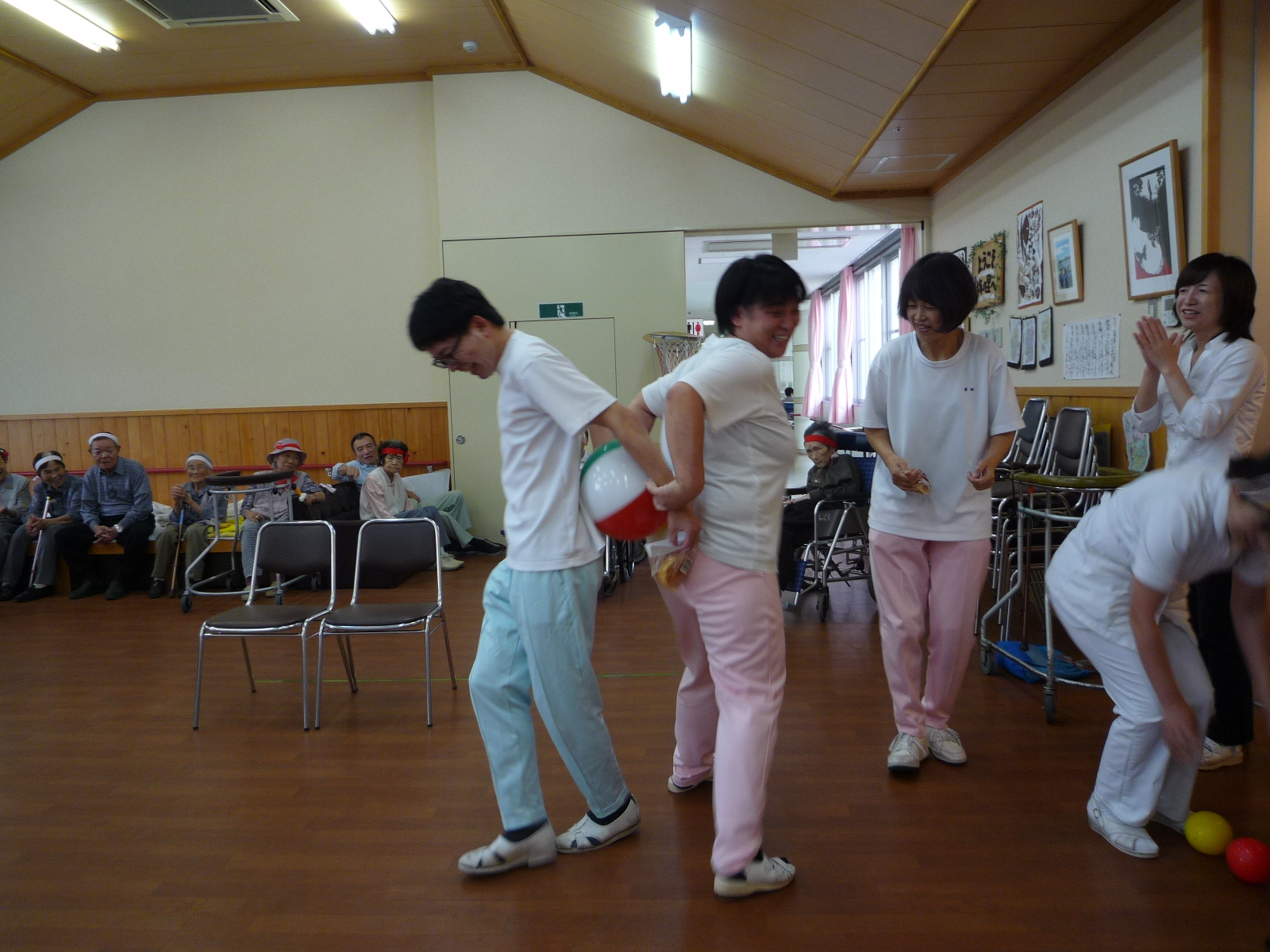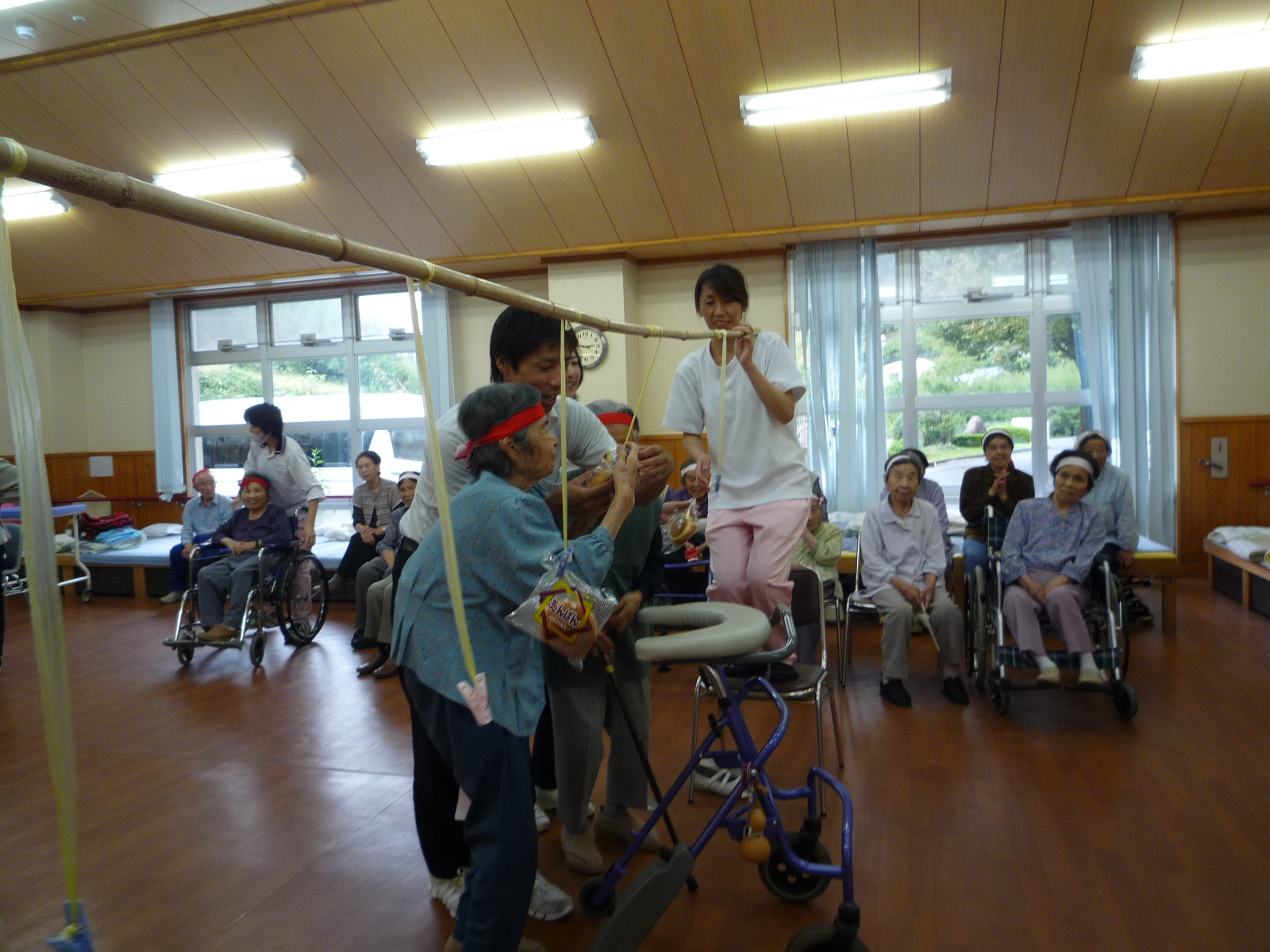 種目は玉入れ、球落とし、パン食い競争で皆さん若い頃に戻られたかの様に
