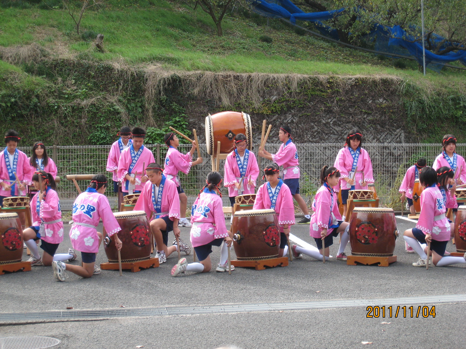 梅の里で、上南部中学校3年生による、和太鼓の演奏会がありました。