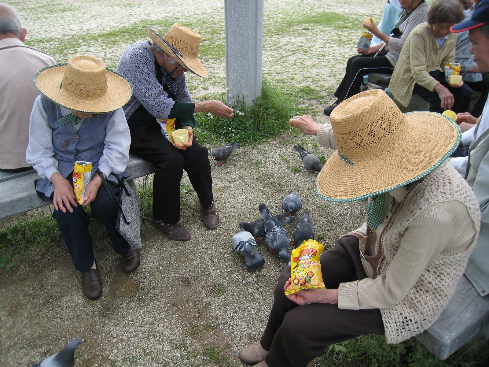 鳩がたくさんよってきて楽しく過ごしてもらえたかなと思いました。