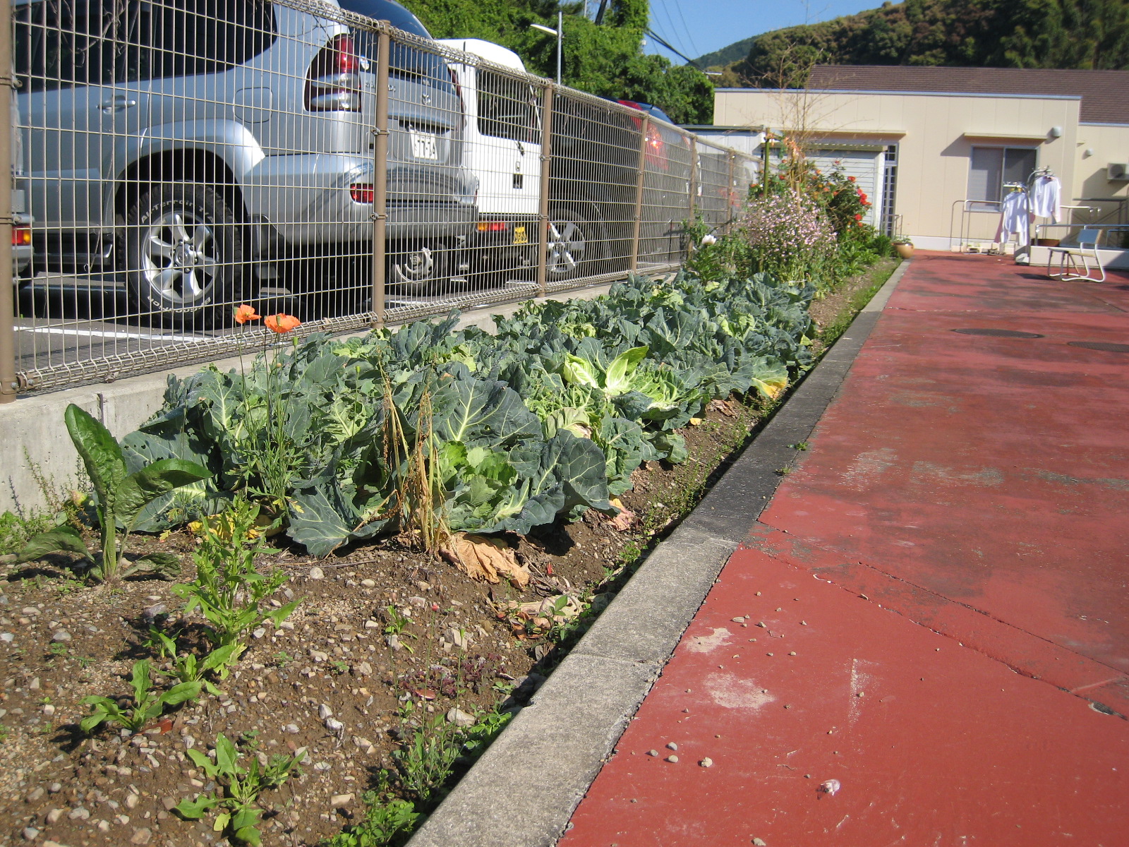 デイサービスの菜園に皆さんと一緒に育てたキャベツが実りました。