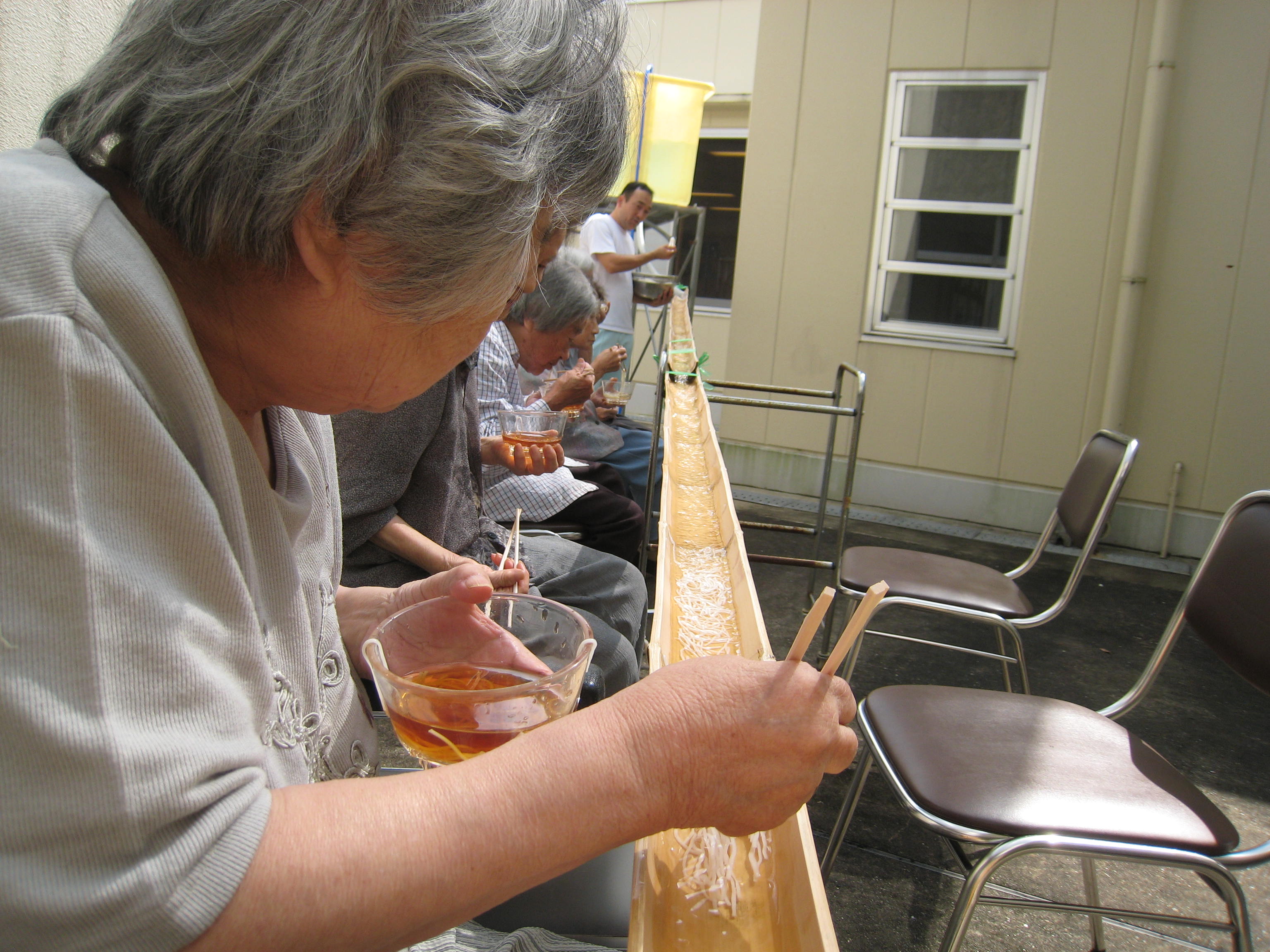 台風のため日程が2日延びましたが、7月23日午後より流しそうめんを行