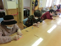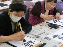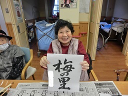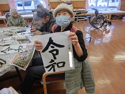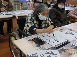 さて、新年最初のレクリエーションは、書初め会でした。
