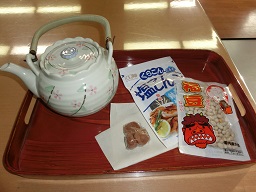 おやつと共に『福茶』梅干しと豆と昆布のお茶でホッと一息。