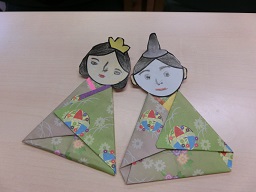 おだいり様とおひな様をお一人ずつ作っていただきました。