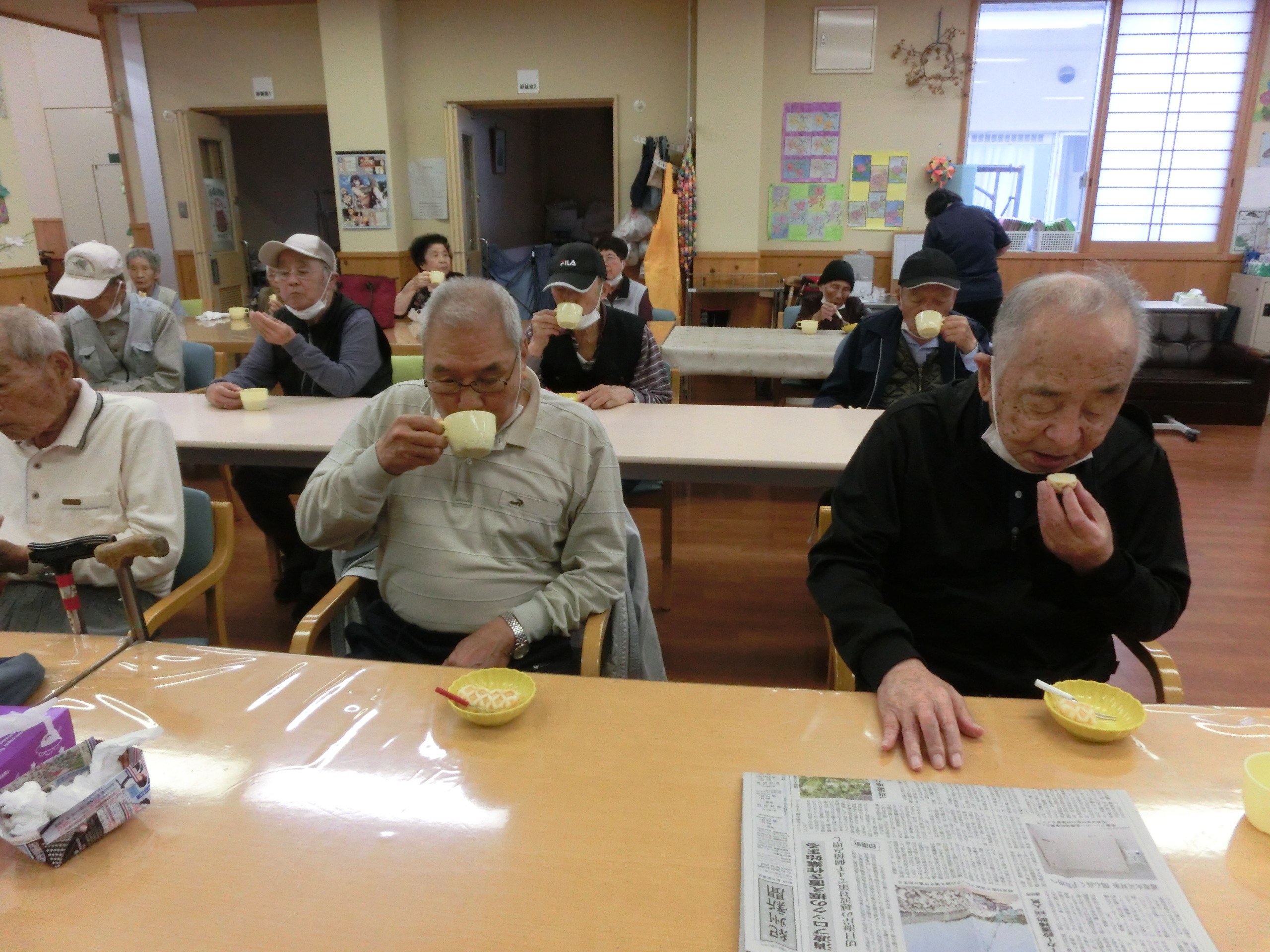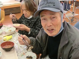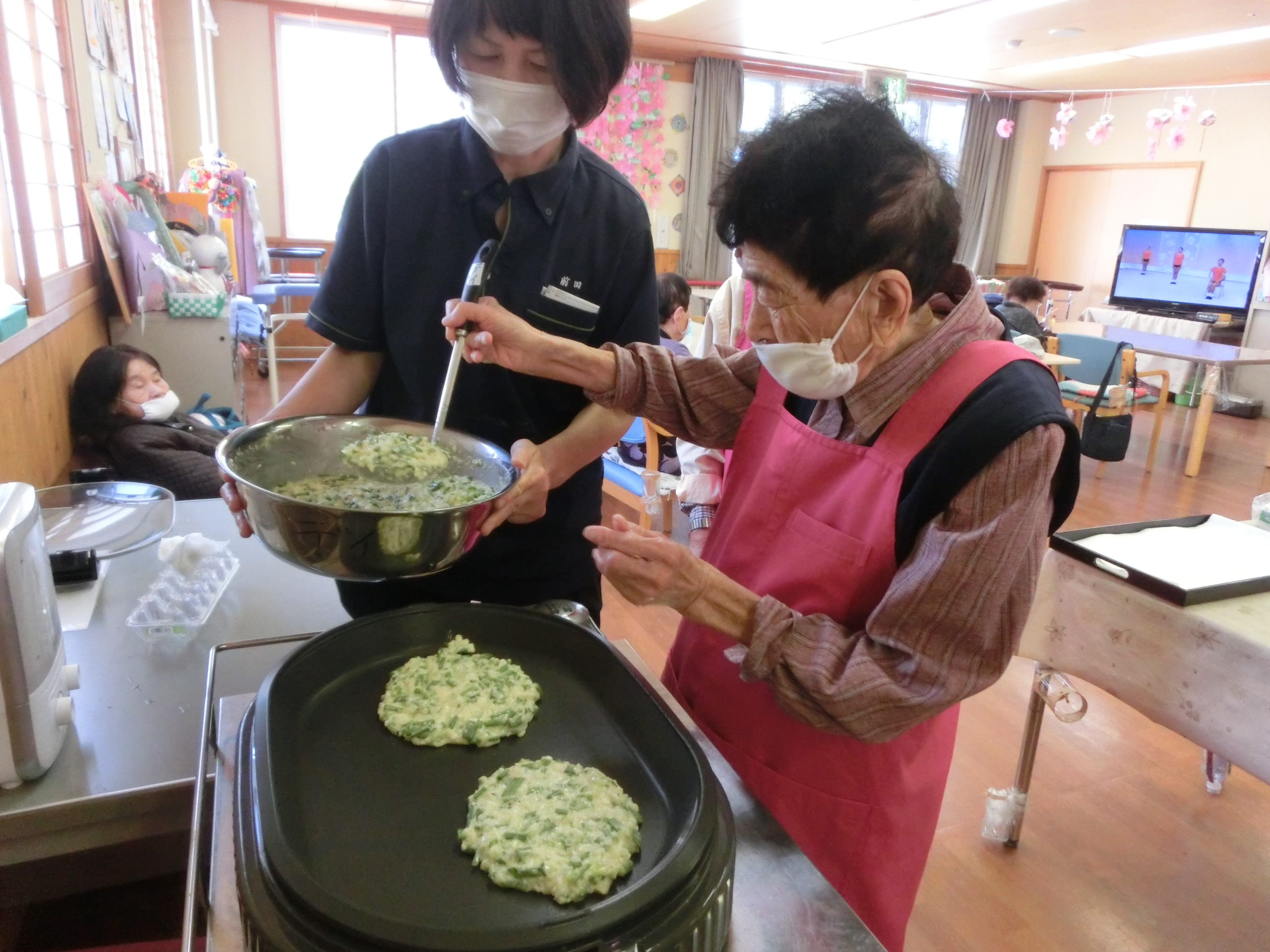主婦歴の長い利用者の方にもたくさん手伝っていただき柔らかくておいしいお好み焼きができましたよ☆
