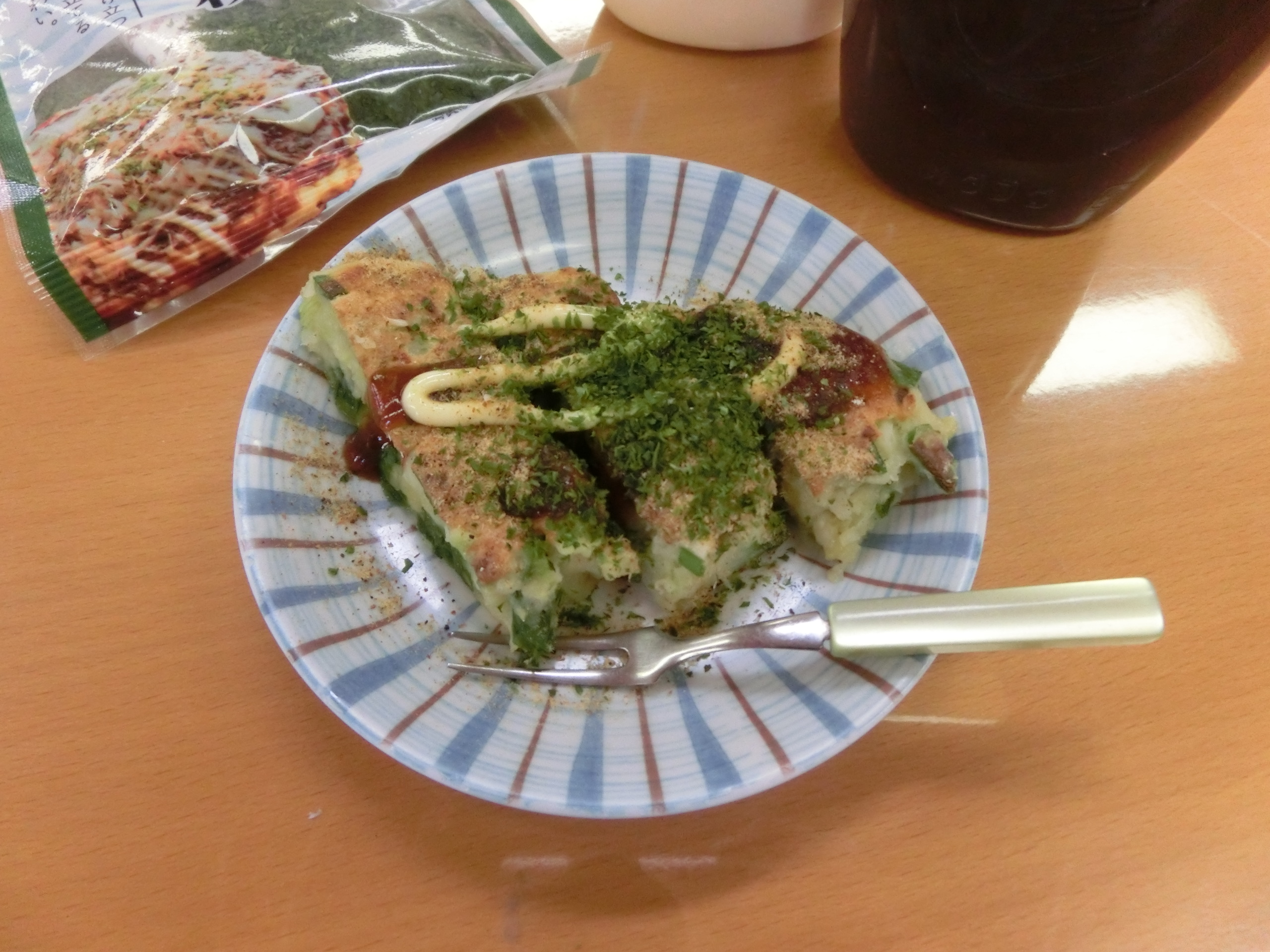 先日、菜園で穫れたワケギを使ってお好み焼きを作りました