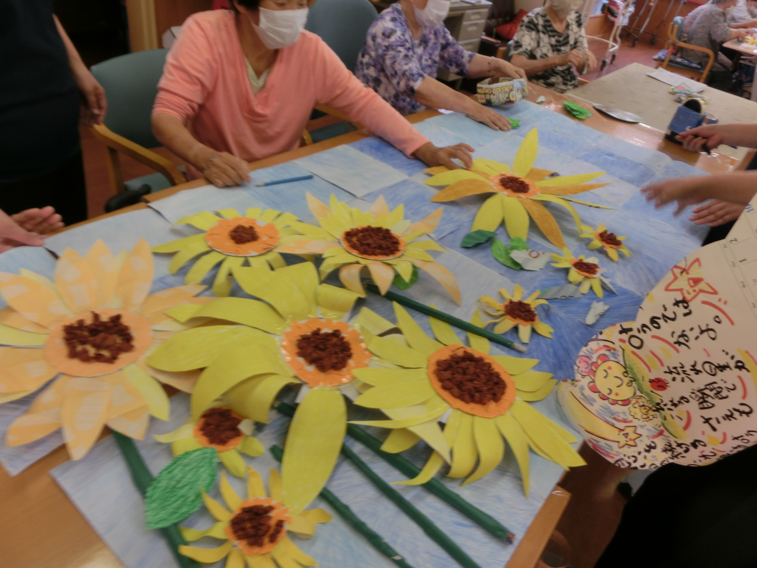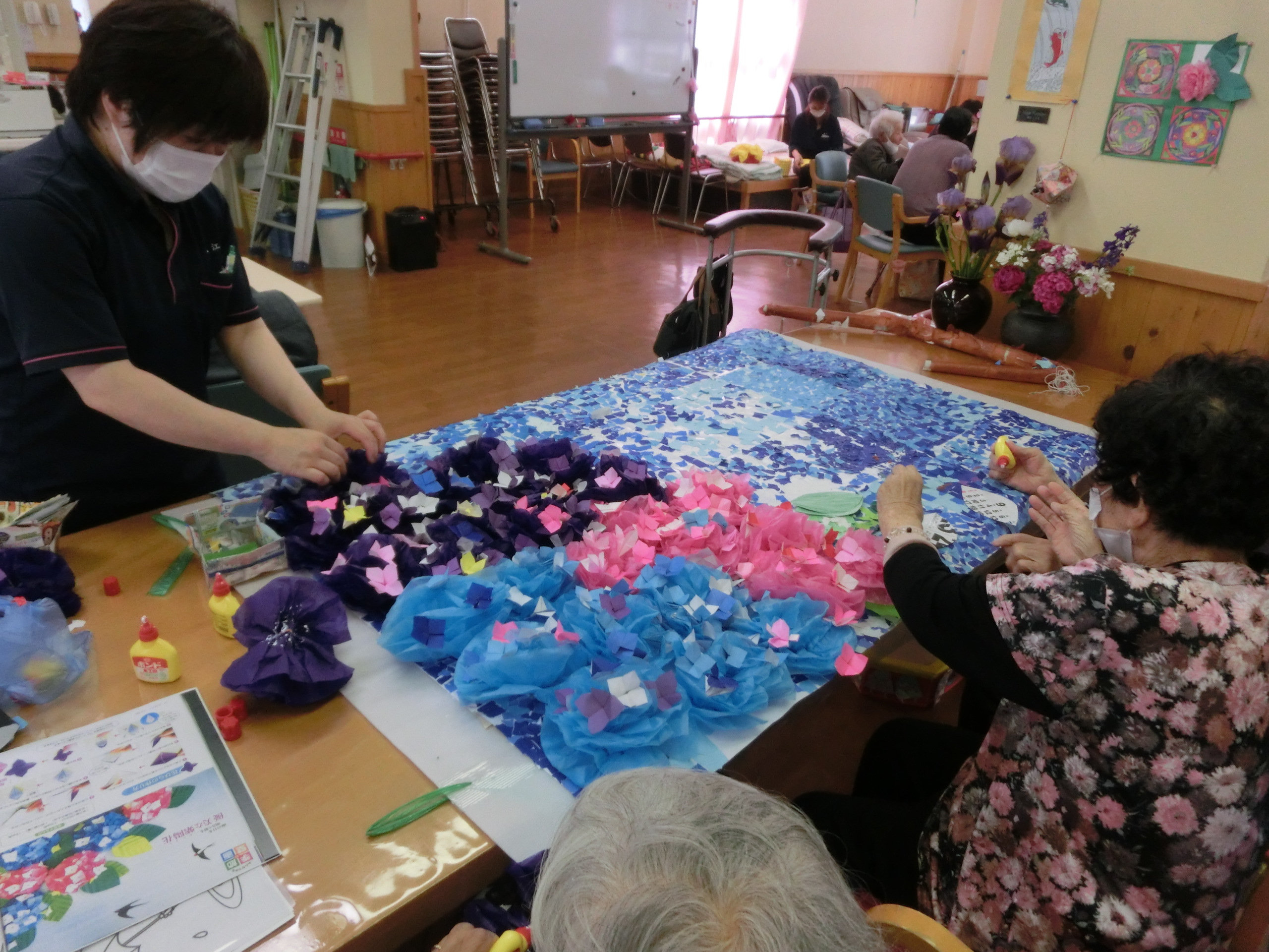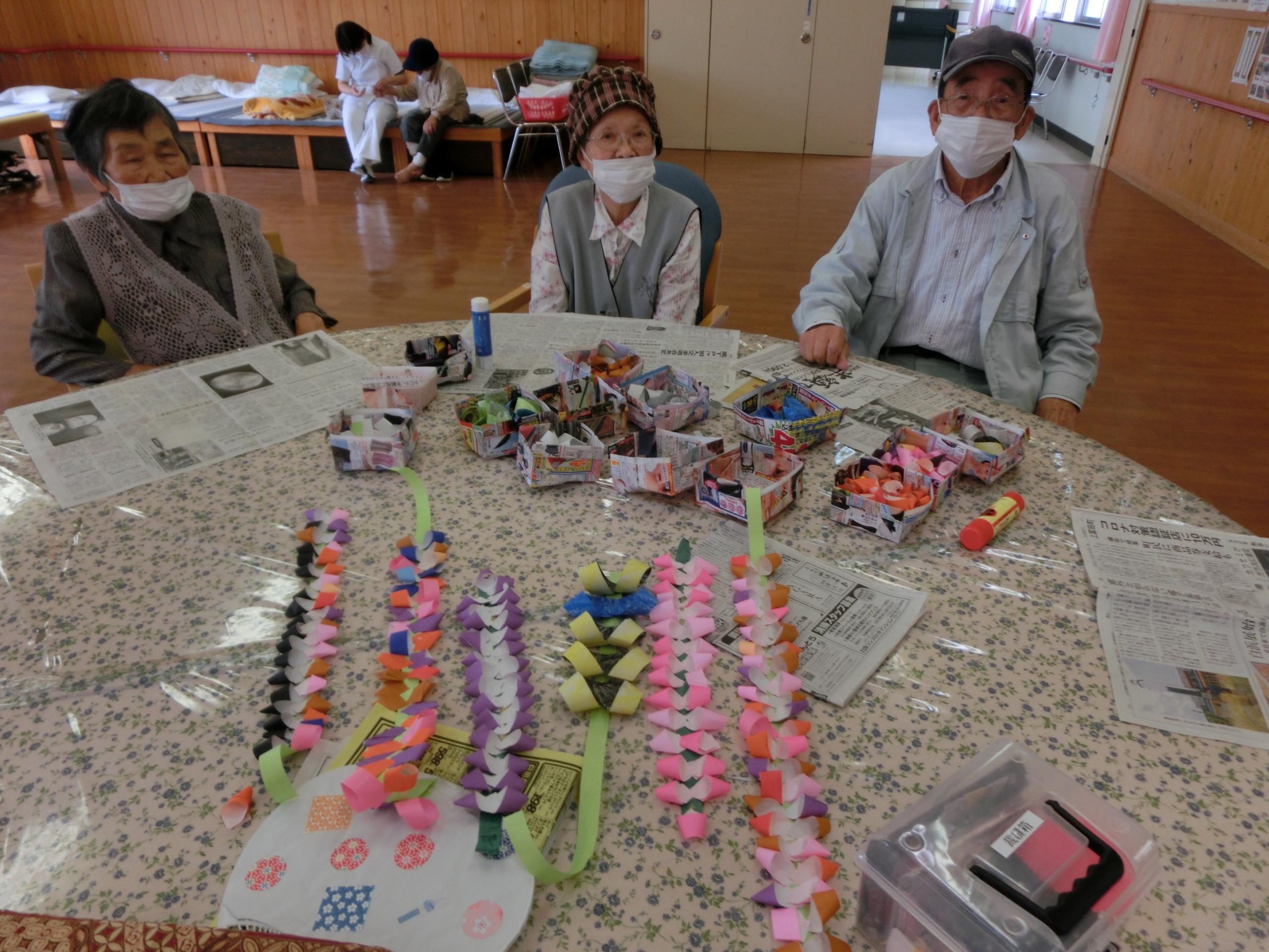 貼り絵や、折り紙、塗り絵と作業をしながら、