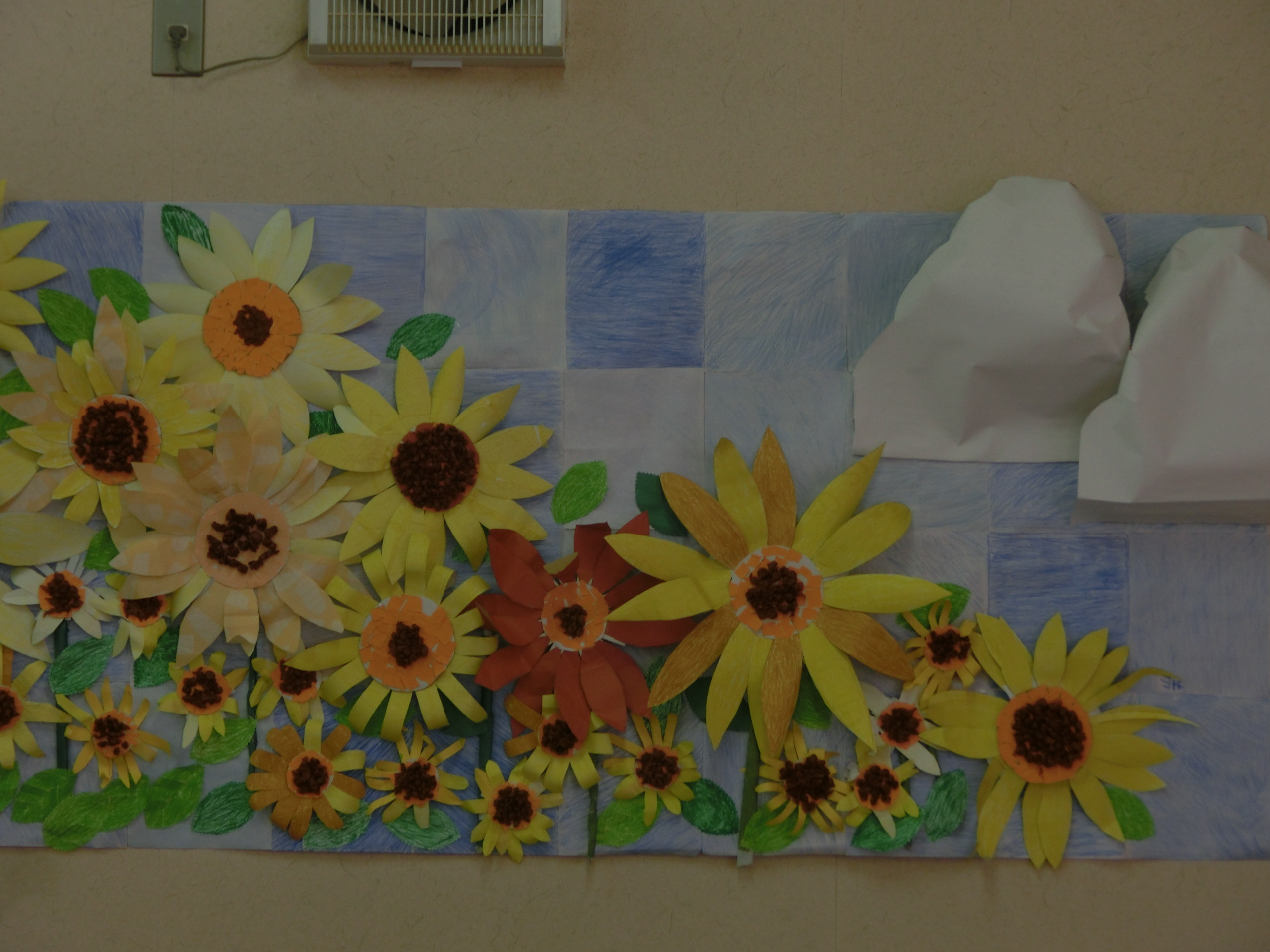 お顔も各自で書き入れてできあがった紙人形を壁画として