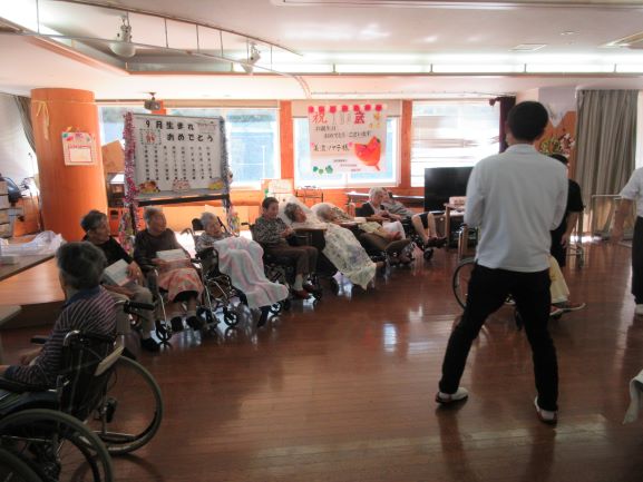楽じゃ〜、永楽じゃ〜」との掛け声でホール内を練り歩き、利用者さんから