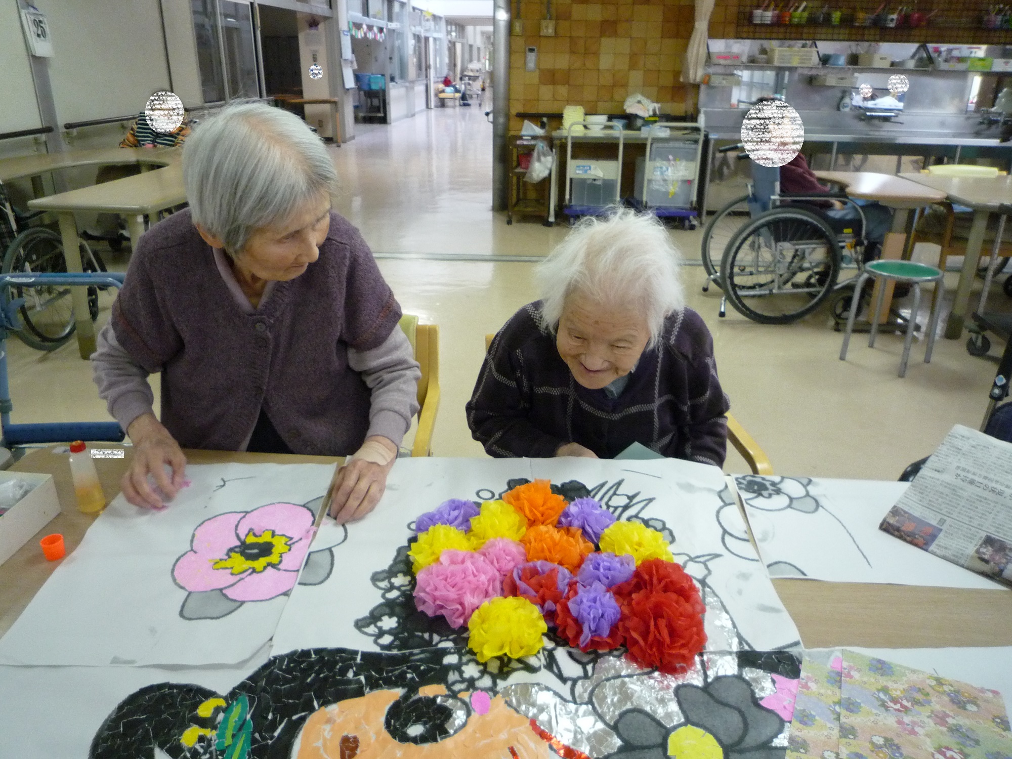 利用者の皆さまで、コツコツお正月飾りを作成中