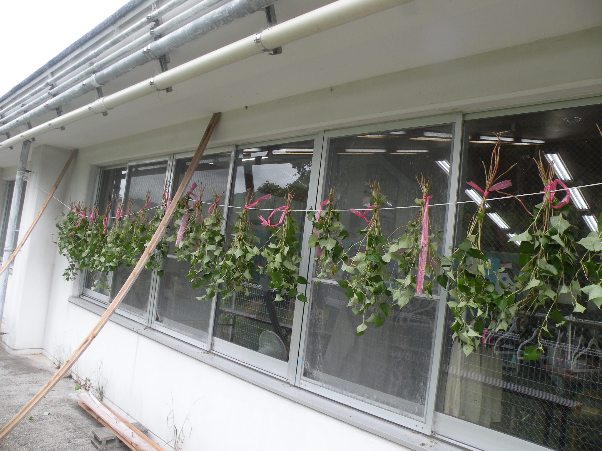 しっかり葉っぱを洗って、紐や輪ゴムで縛って