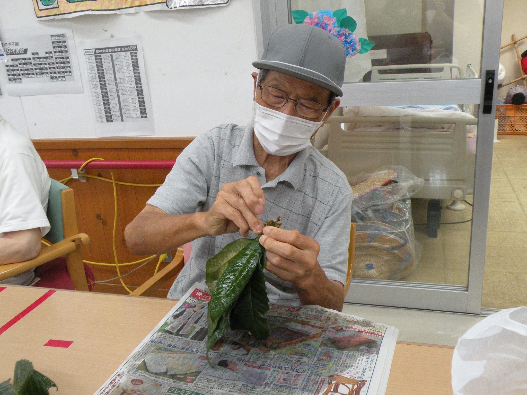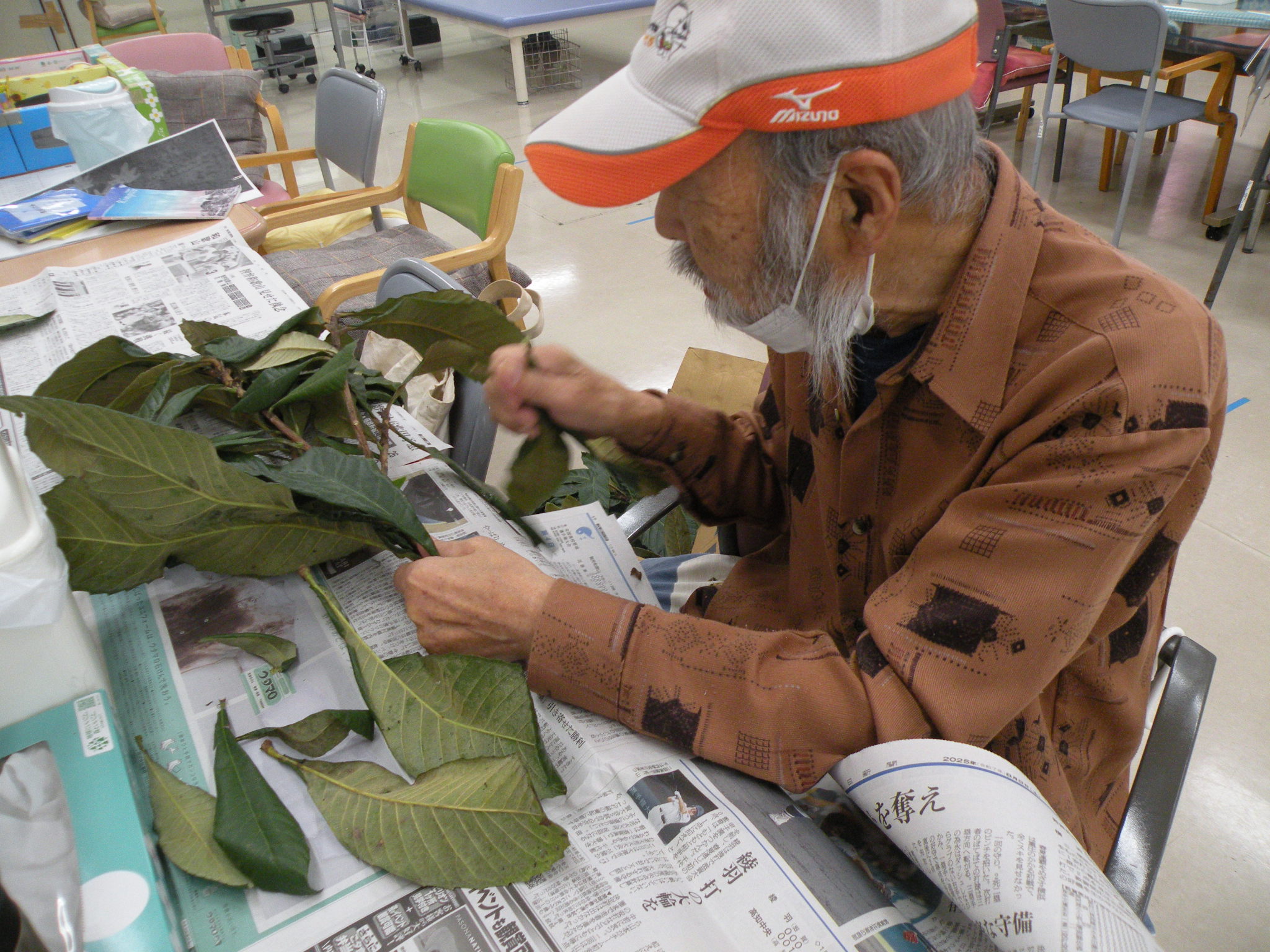 利用者様のお庭にあるドクダミとビワの葉でお茶作りをしました☺