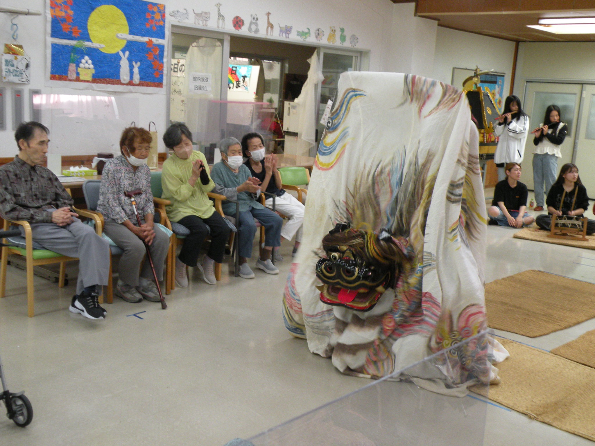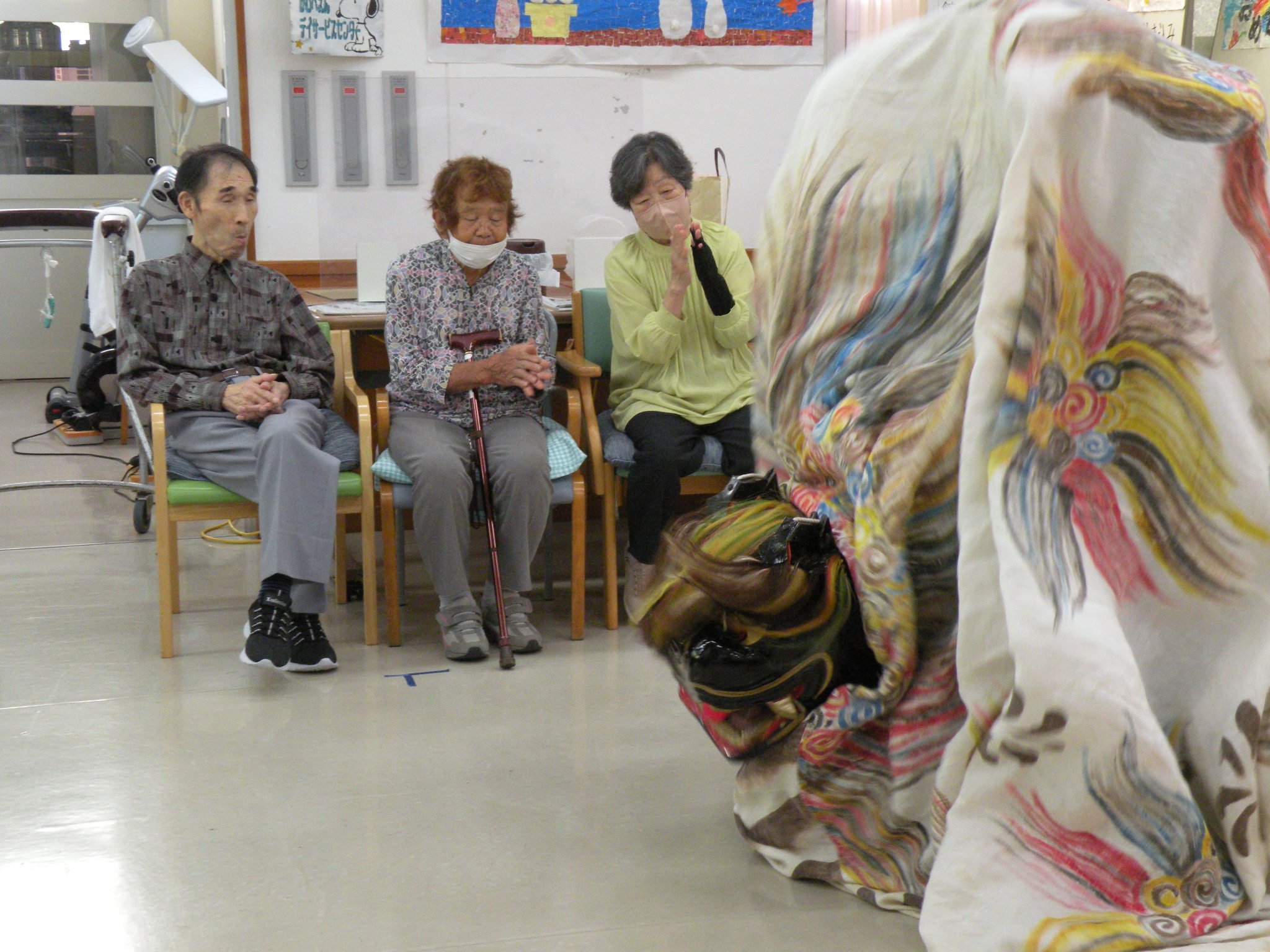 本日は傘破ちで和佐地区の獅子舞が来てくださいましたヽ(=´▽`=)ノ