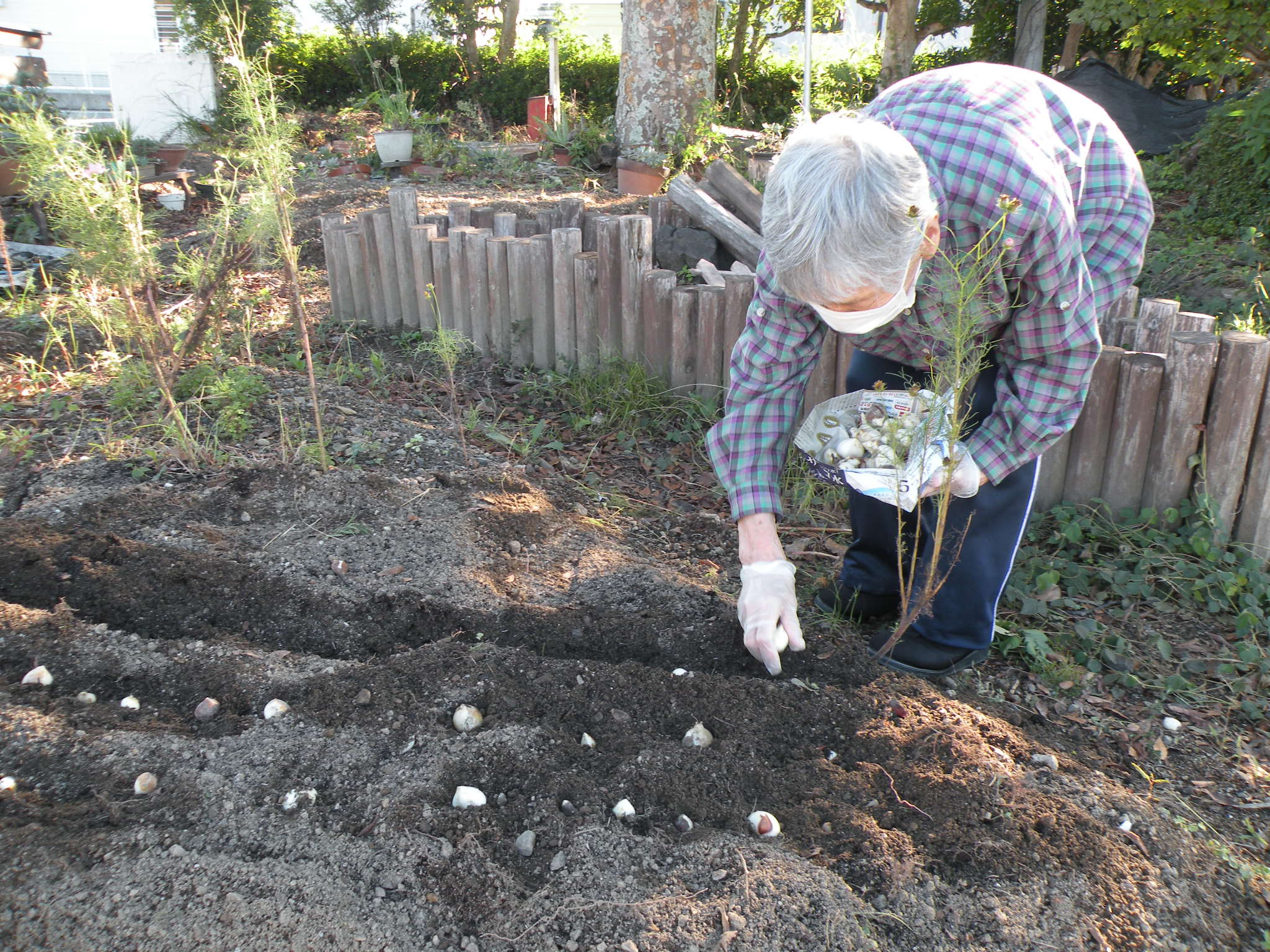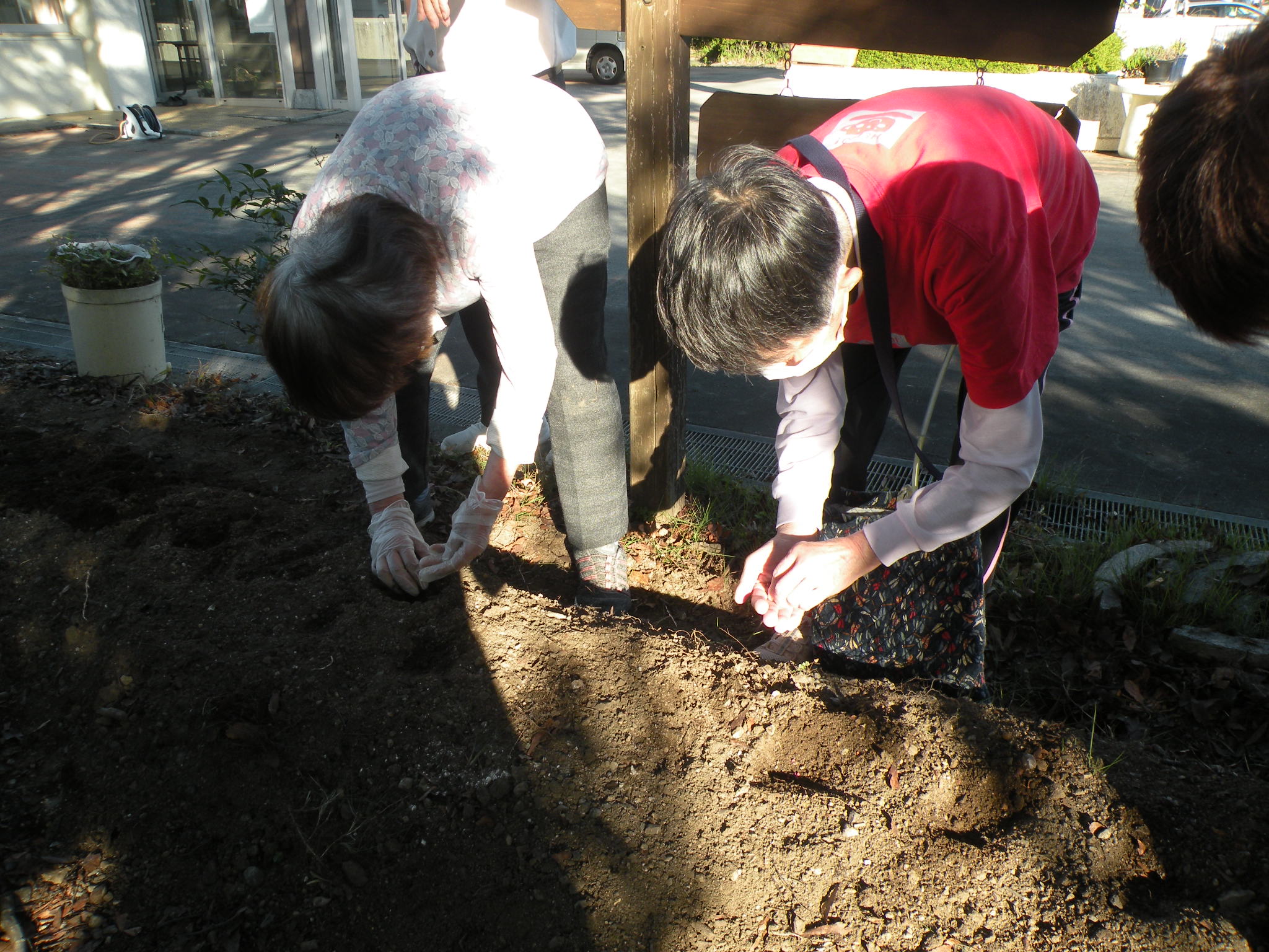 本日は川辺園玄関前の畑にチューリップの球根を植えました🌷
