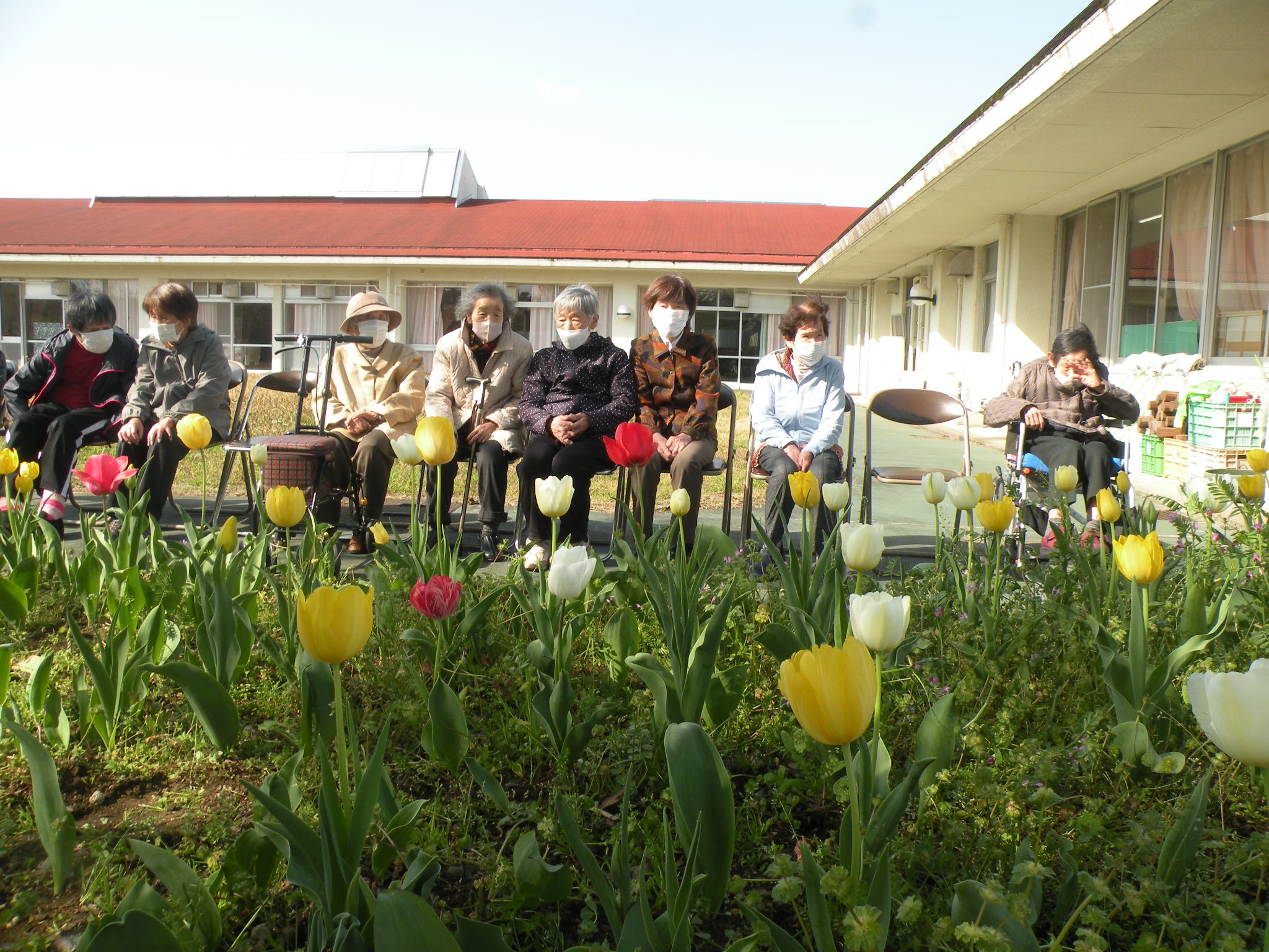 川辺ガーデンにもチューリップがたくさん咲いていて、