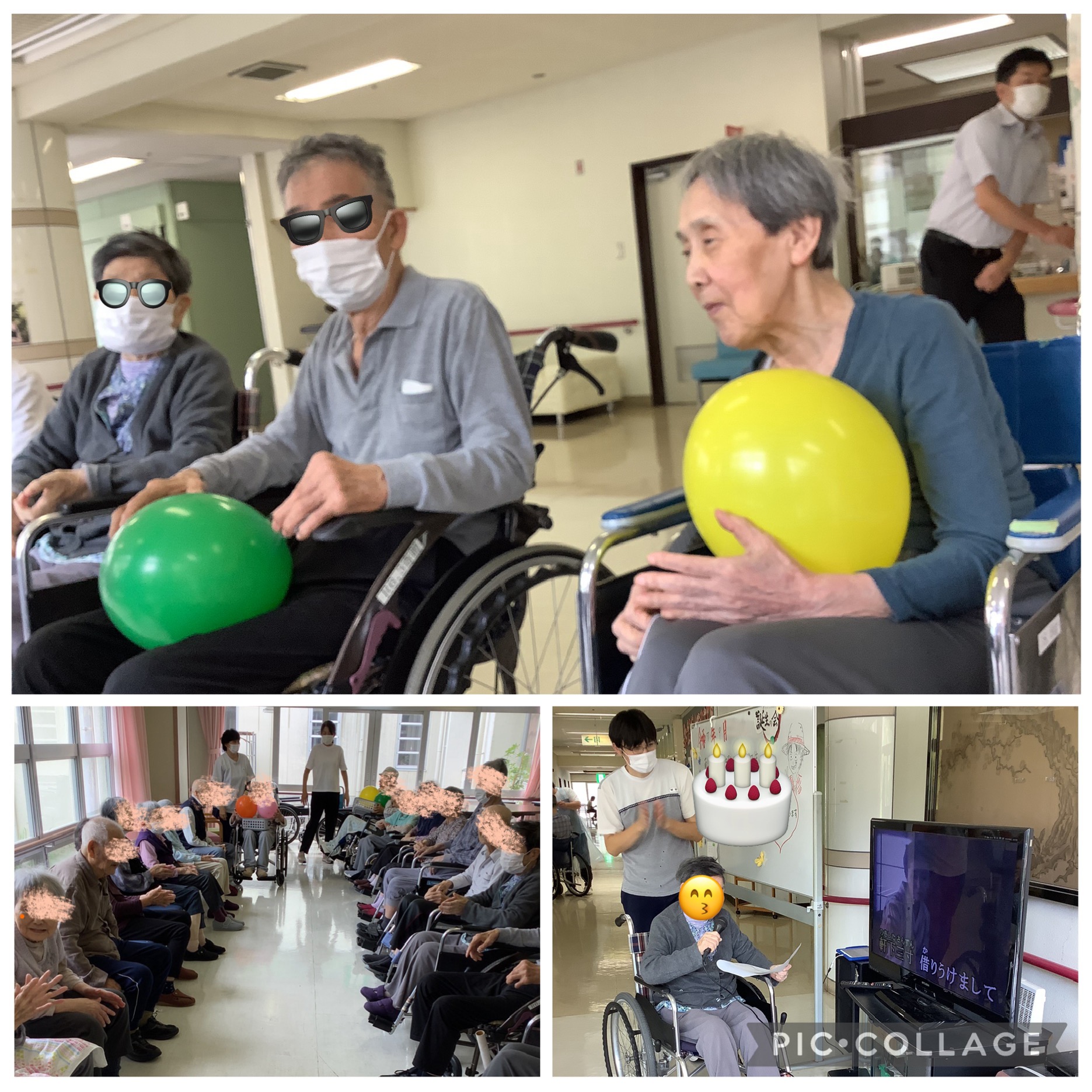 お誕生日会の後は夕涼み会で風船送り🎈やカラオケを楽しんでおられました。
