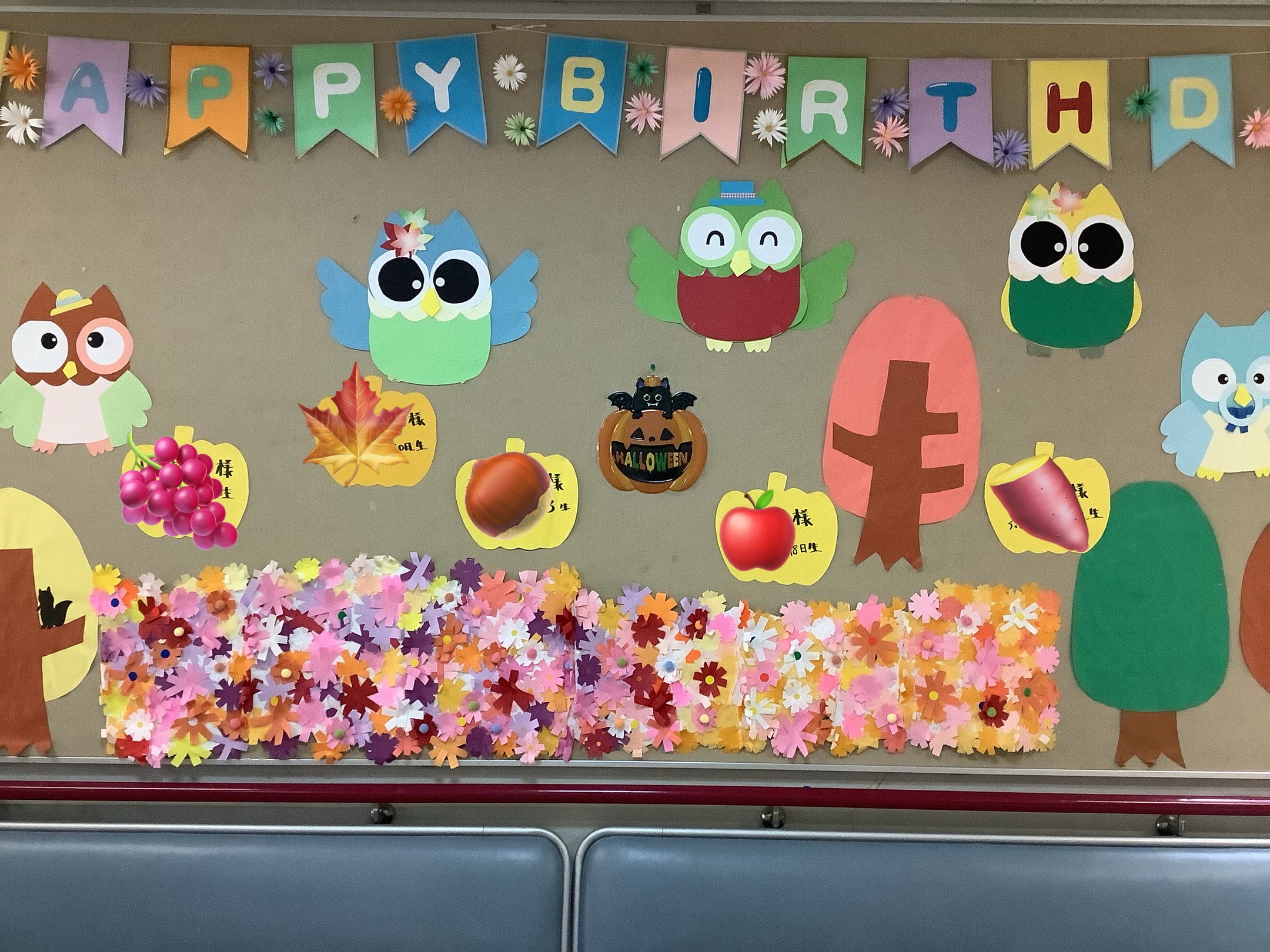 今月の壁画は秋らしく、フクロウ🦉です😁