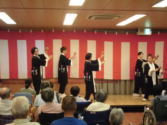 らしい演奏と演技のあとは、この日にむけて職員が練習してきた『よさこい』と