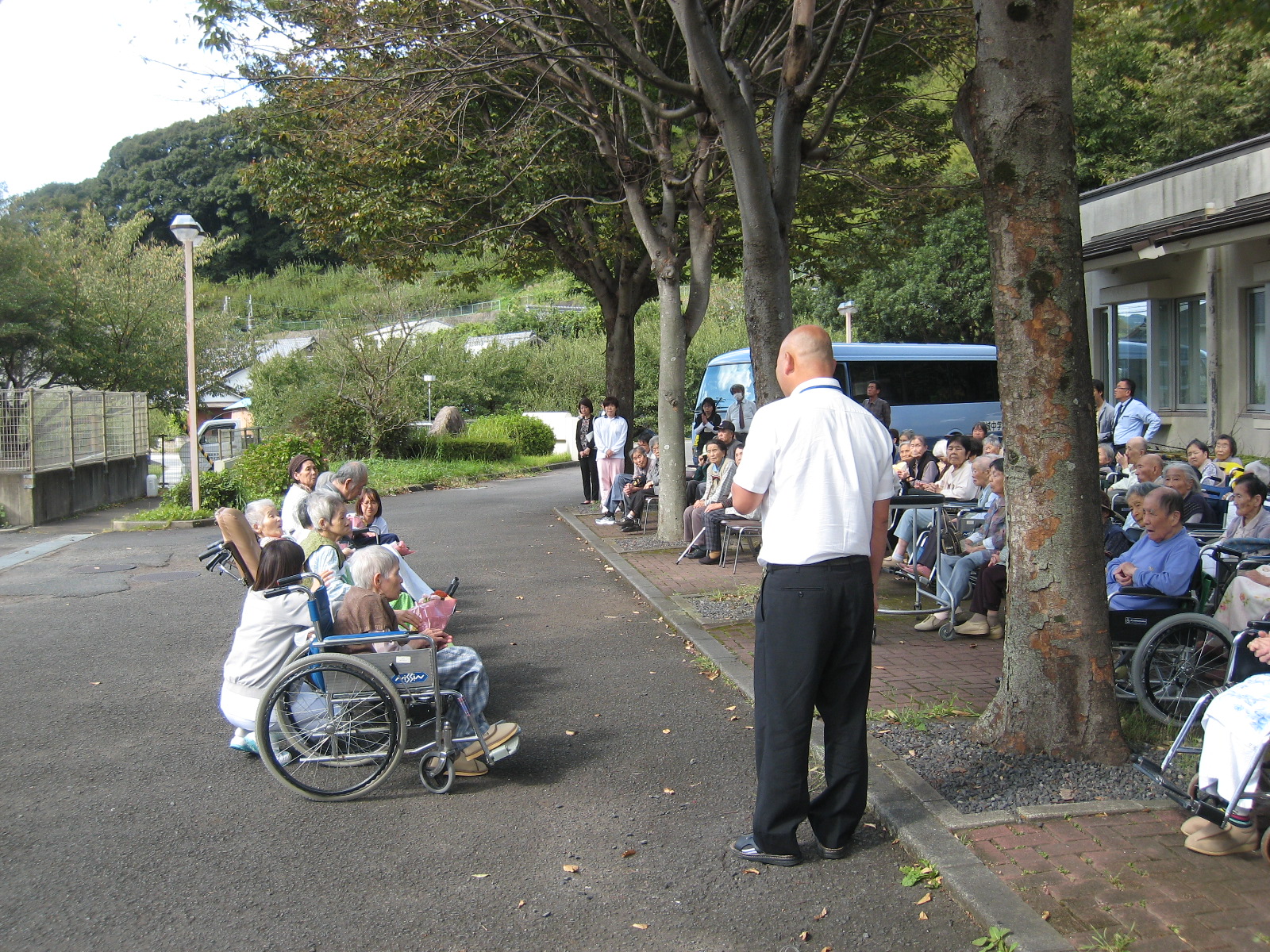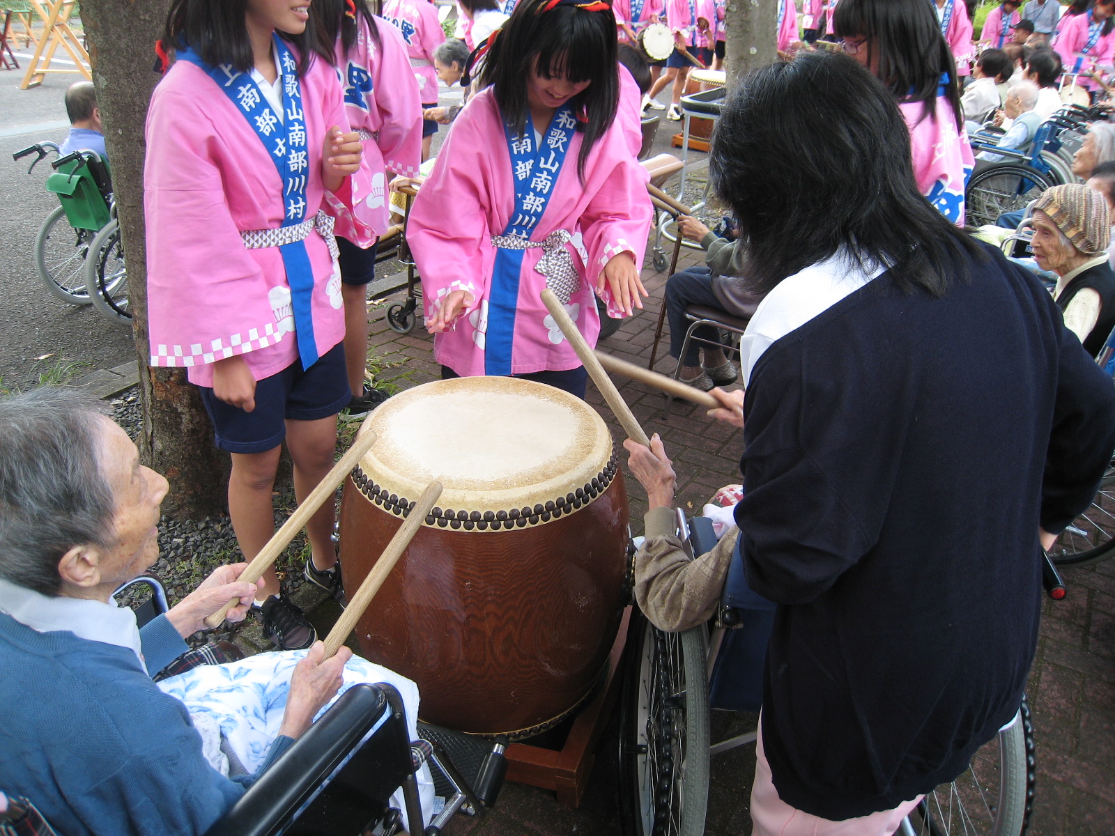 れる方もおり、太鼓の披露のあとはふれあいタイムとして、生徒さんが利用者さん