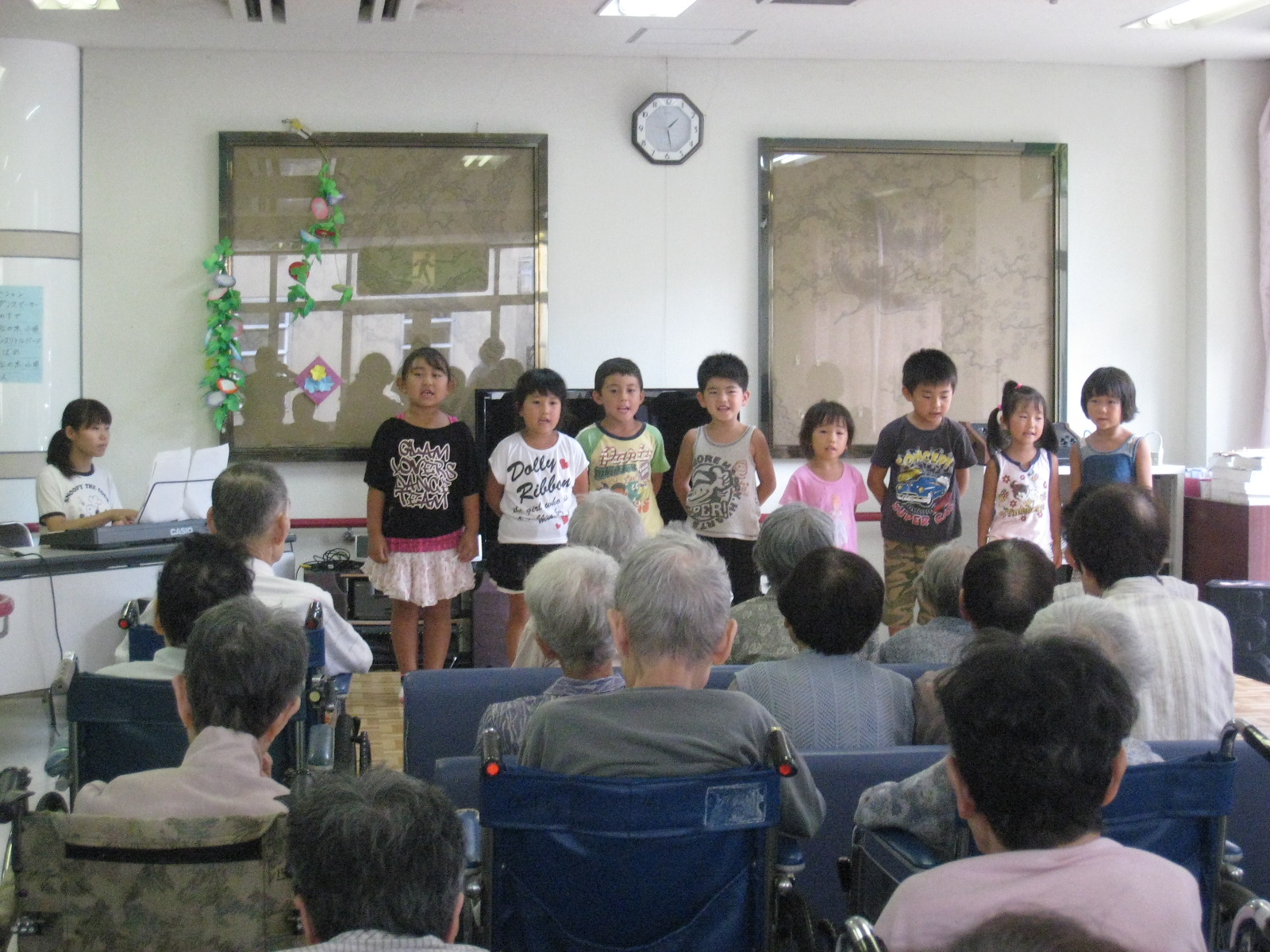 お年寄りの皆さんに、歌のプレゼントを持って来てくれました。